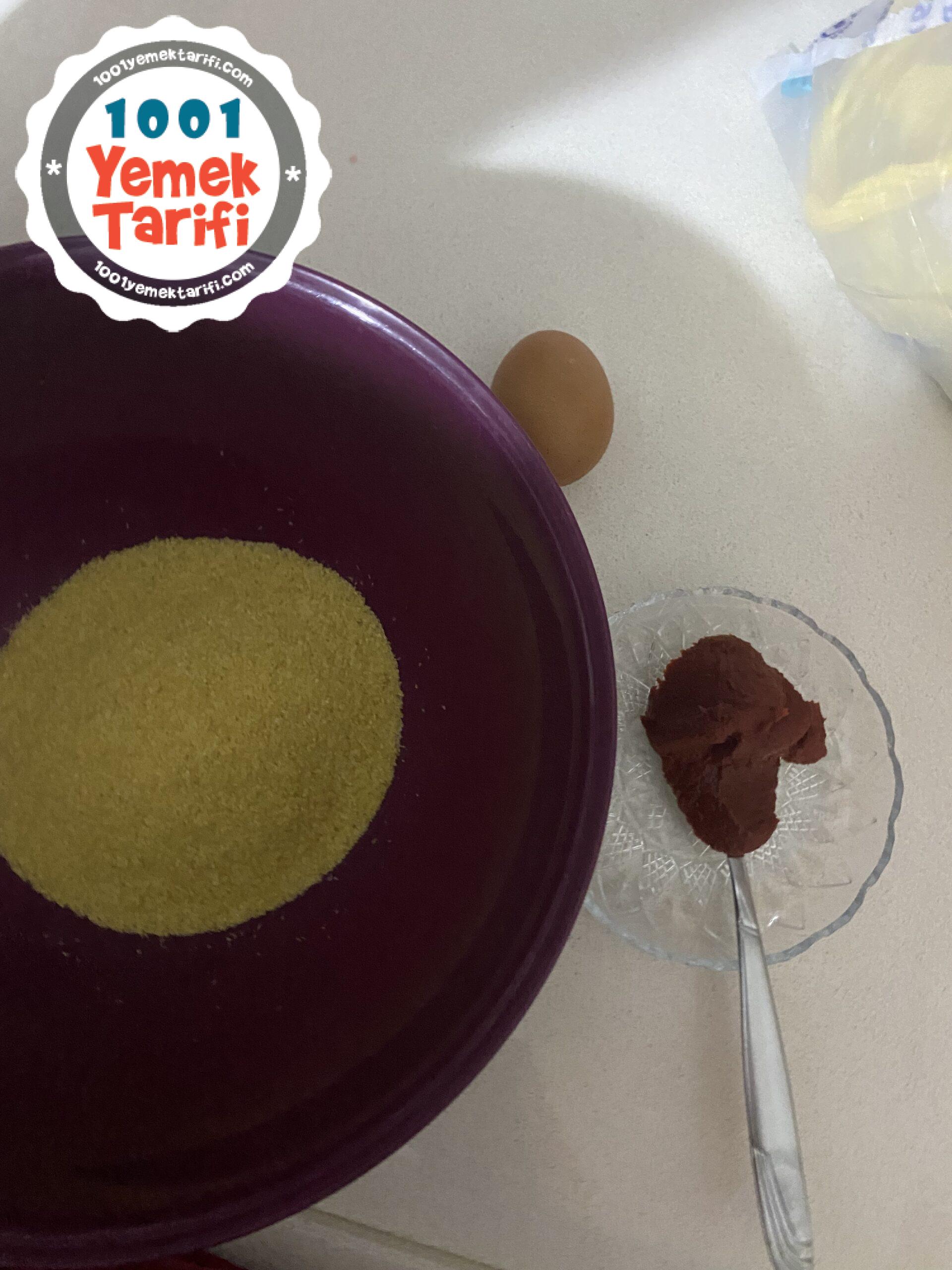 - İnce bulgur ve irmiği üzerini geçecek kadar kaynar suyla ıslayıp suyunu çekmeye bırakıyoruz.