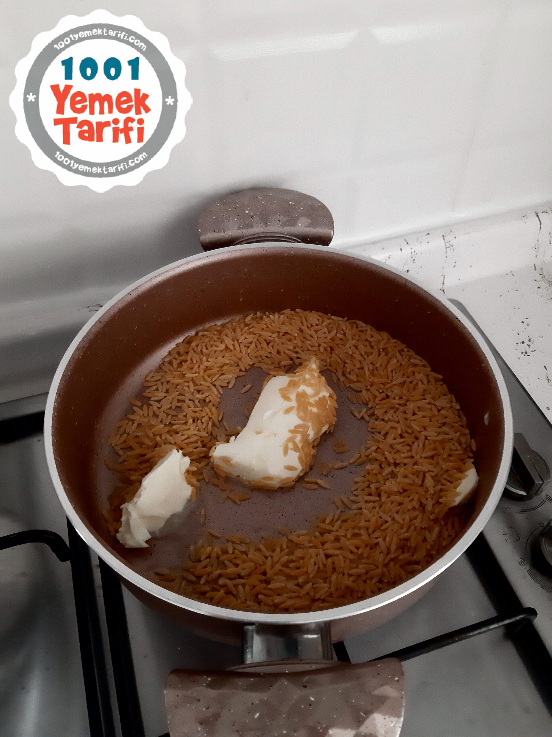 • Şehriyelerin rengi değiştikten sonra kalan 1 su bardağı şehriyemizi de ekleyelim.