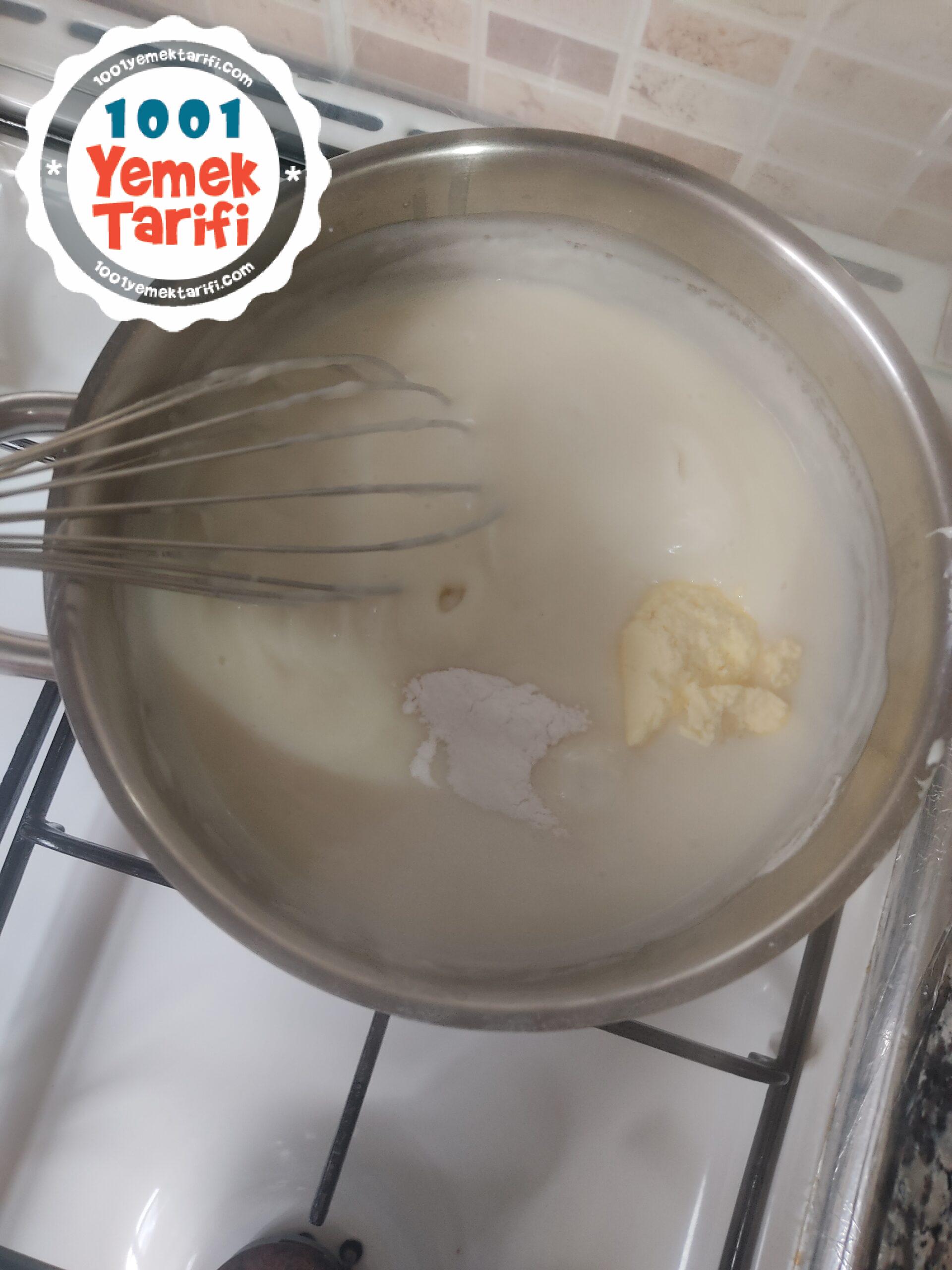 - Öncelikle tenceremize süt un ve şekeri koyup güzelce karıştırıyoruz.