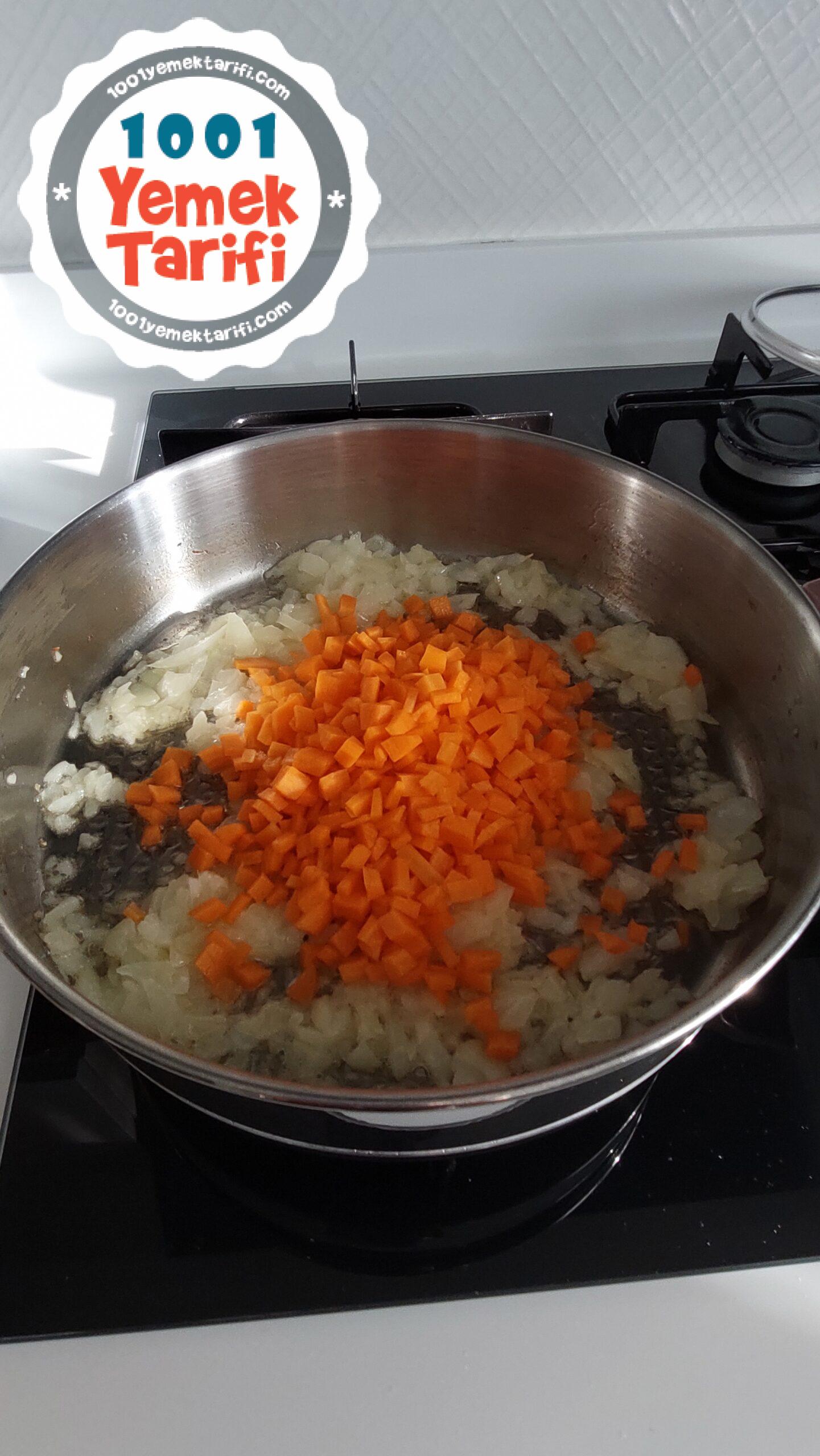 - Kavrulan soganlarin uzerine küp küp doğranmış havuclari koyun.
