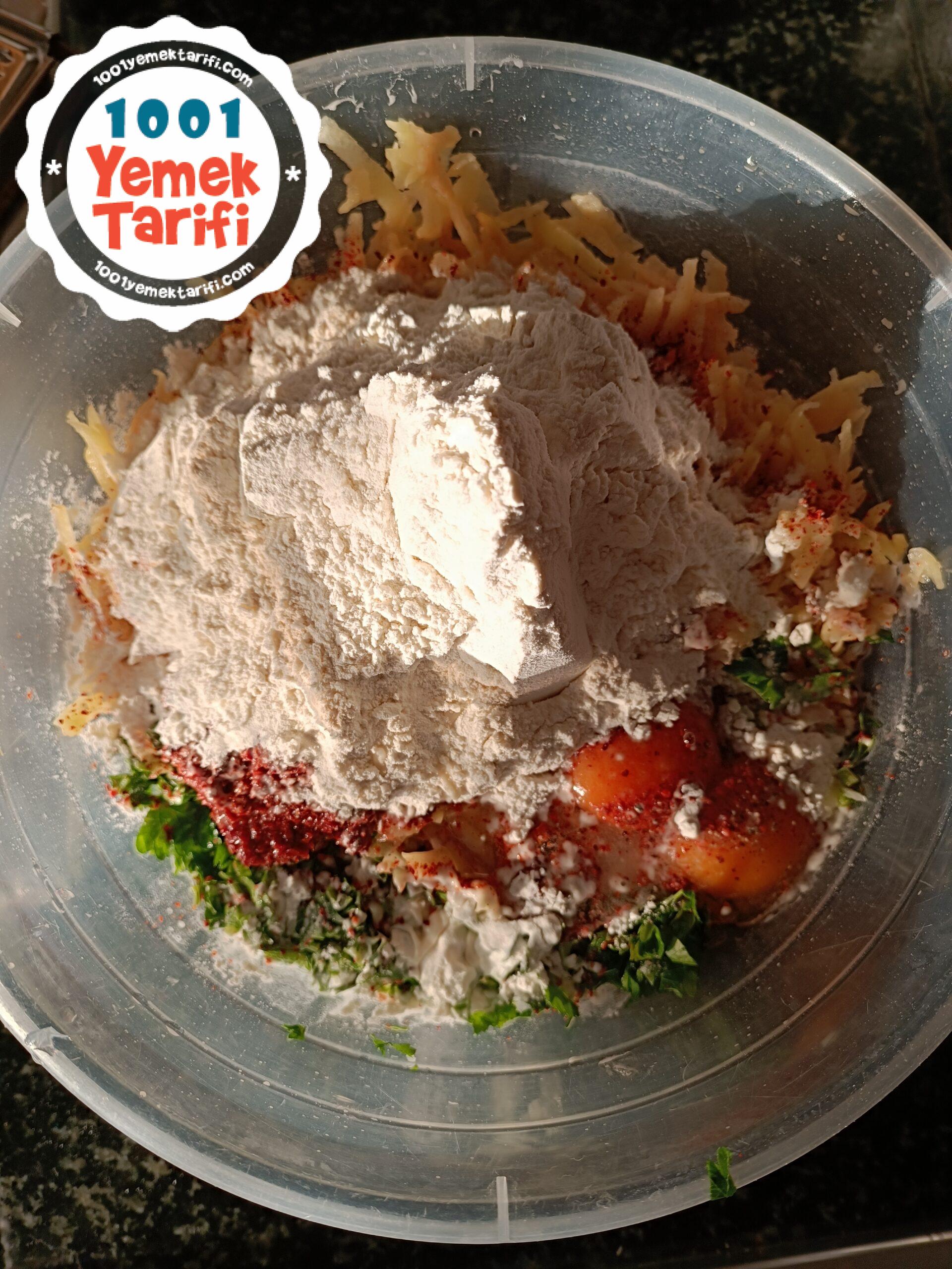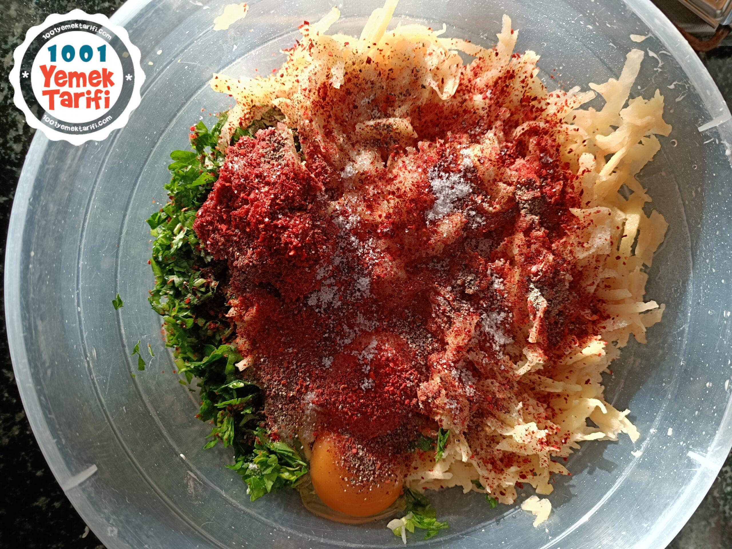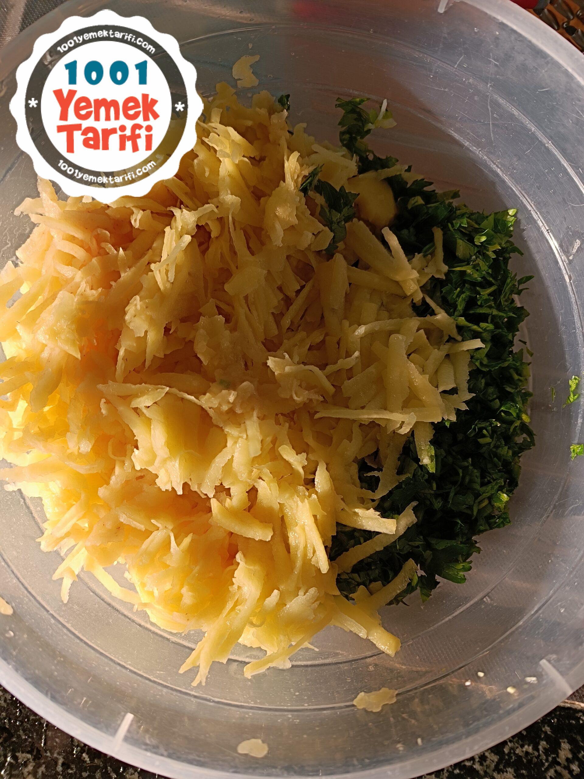 - Maydanozları da iyice kıyalım, patatesleride rendeleyelim ve kaba alalım.