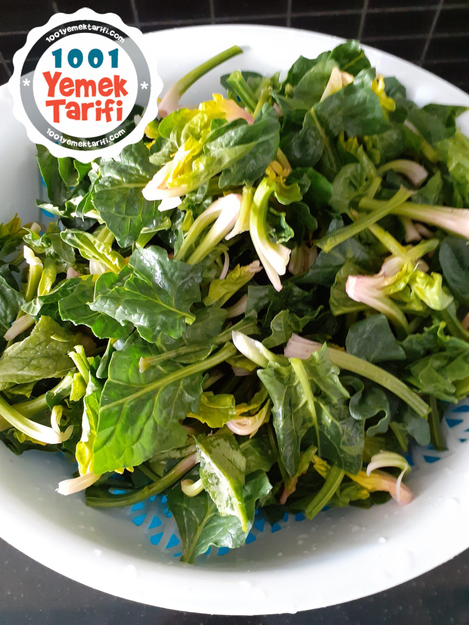- Ispanak kökünü bol suda yıkıyoruz ve suyunu süzmesi için süzgece alıyoruz.
