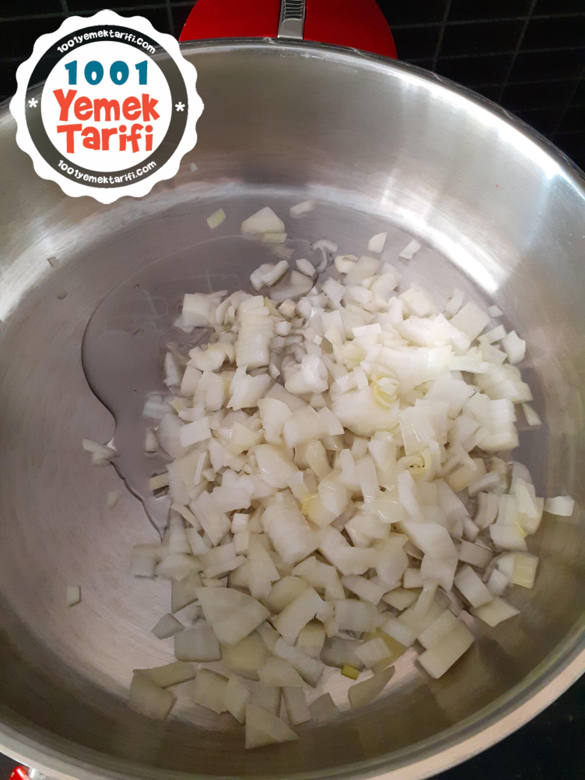 - Ardından tenceremize sıvıyağımızı koyup üzerine soğanımızı doğruyoruz.