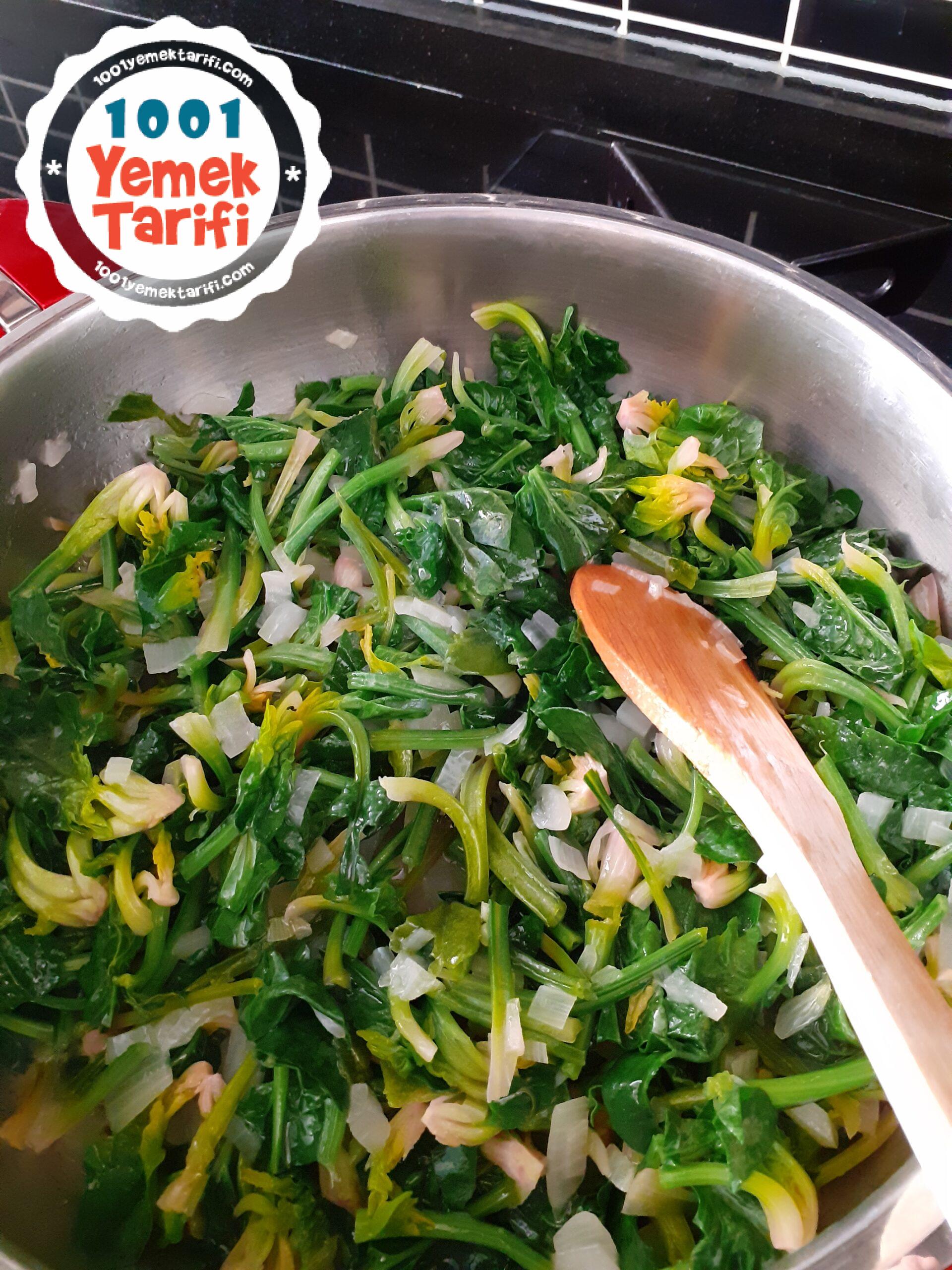 - Soğanımız biraz kavrulduktan sonra ıspanaklarımızı ekliyoruz ve onu da biraz kavuruyoruz.