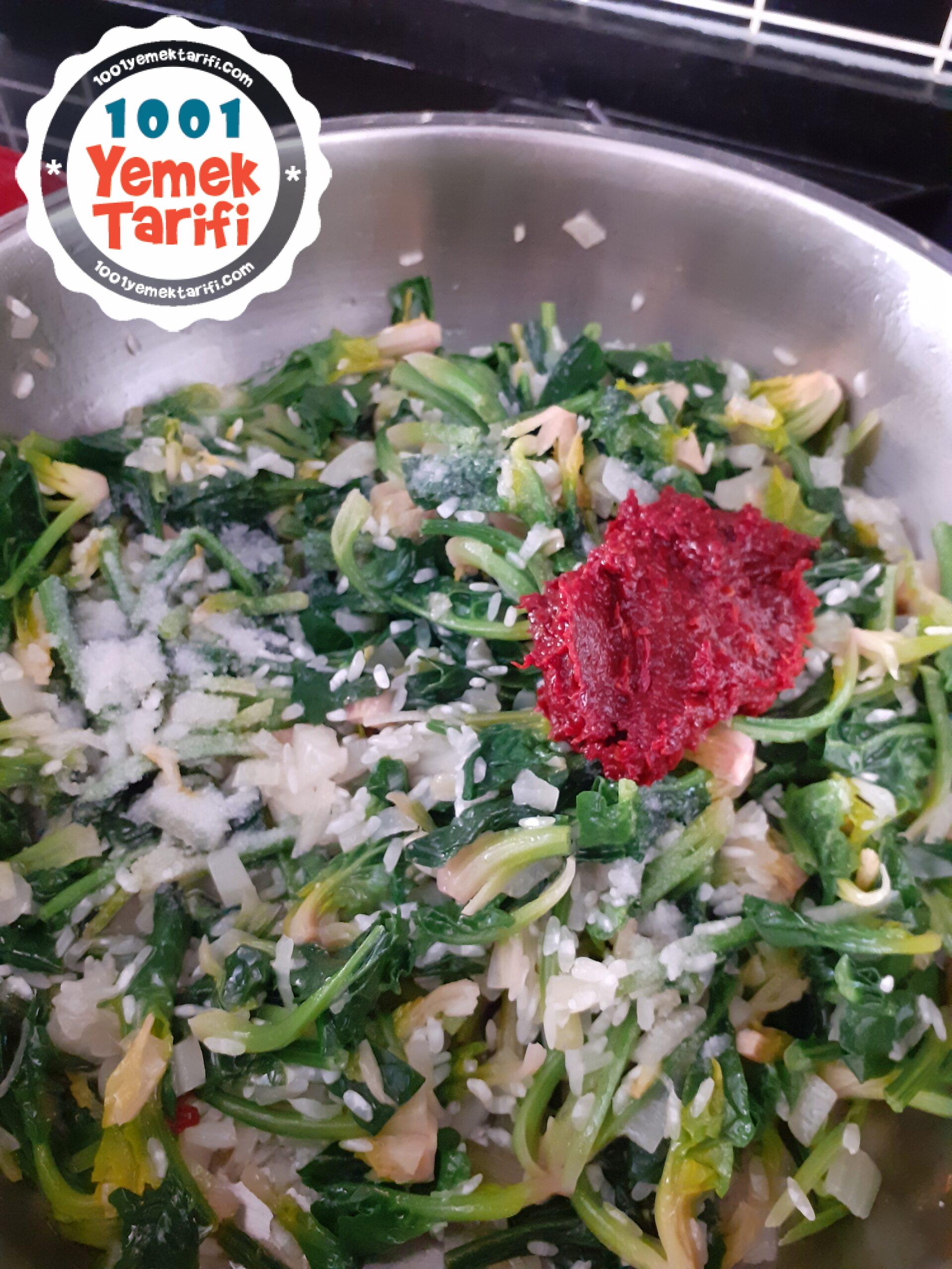 Küçükken annemin yaptığı, lezzetini halâ damağımda hissettiğim ve benim de, annem kadar güzel olmasa da yapabildiğim bir yemek. Ispanağın yapraklarını börek, pasta… ve benzeri yerlerde kullandıktan sonra sap ve köklerini de bu yemekte kullanıyorum. Çok kolay ve çabuk pişen bir yemek. Tadına bayılacaksınız. Afiyet olsun.