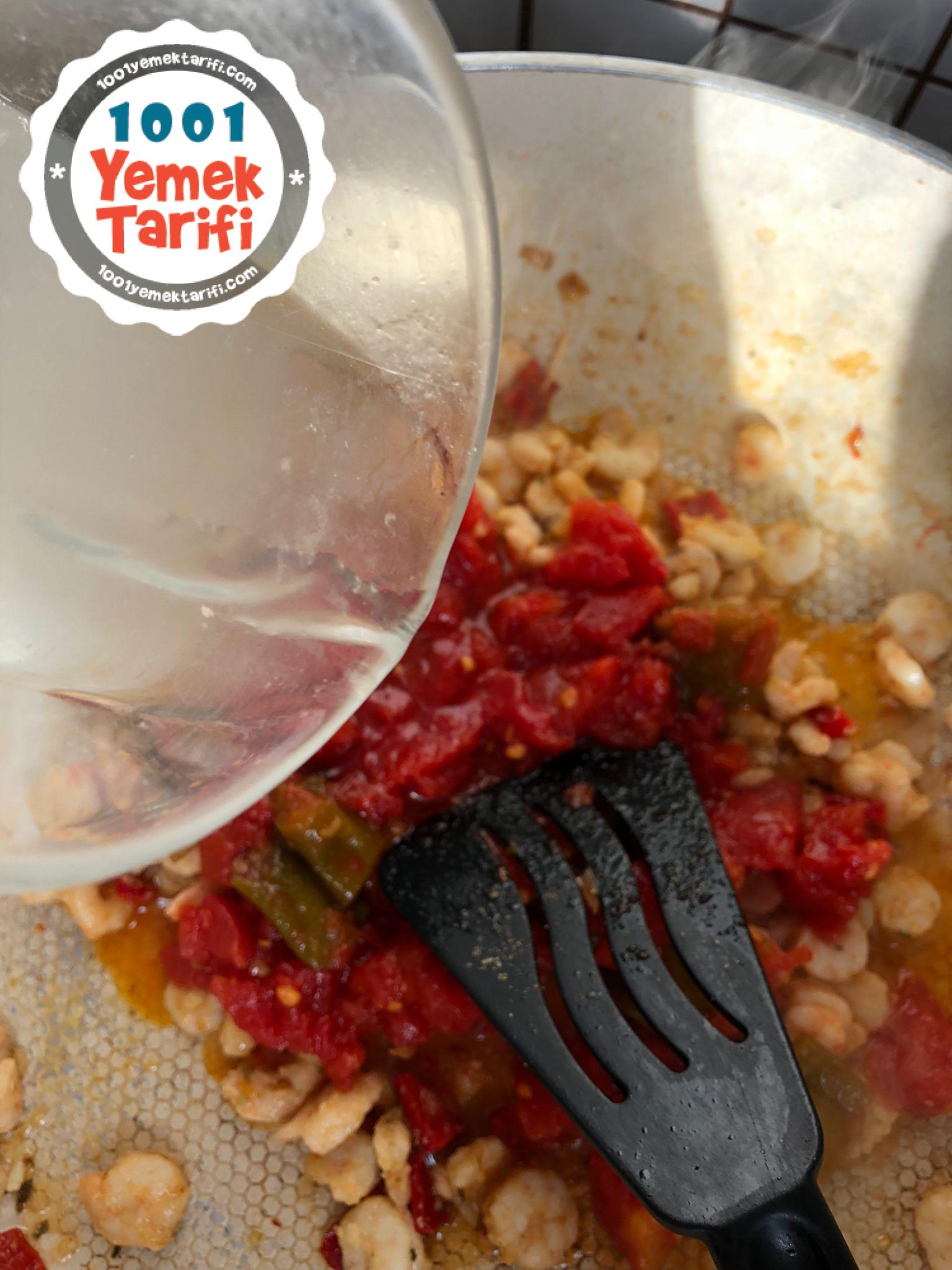 - -Suyunu çektikten sonra içine bir yemek kaşığı tereyağı ekleyelim ve bir tur daha kavurup rendelenmiş veya doğranmış domateslerimizi ekleyelim.