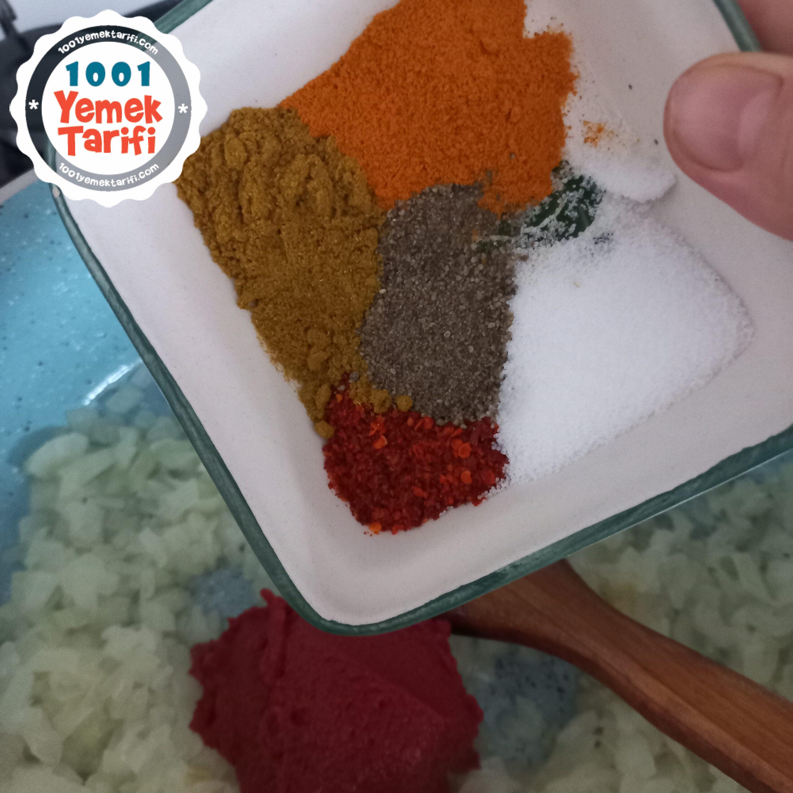 - üzürine domates salçası,baharatları ekliyelim.