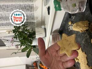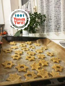 - Cevizli kurabiye hamurunu kesmek için yıldız kalıp kullandım.