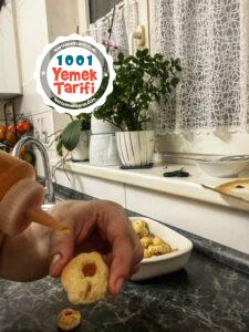 - Ortası delikli ve deliksiz kurabiyeleri tepsiye yerleştirin.