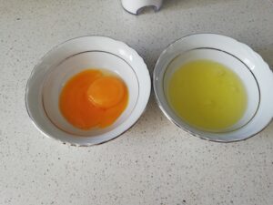 - Öncelikle yumurta sarısı ve akını ayrı kaselere ayırın.