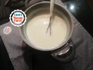 - Uygun bir tencereye sütü, nişastayı unu ve şekeri alıp karıştırıyoruz
