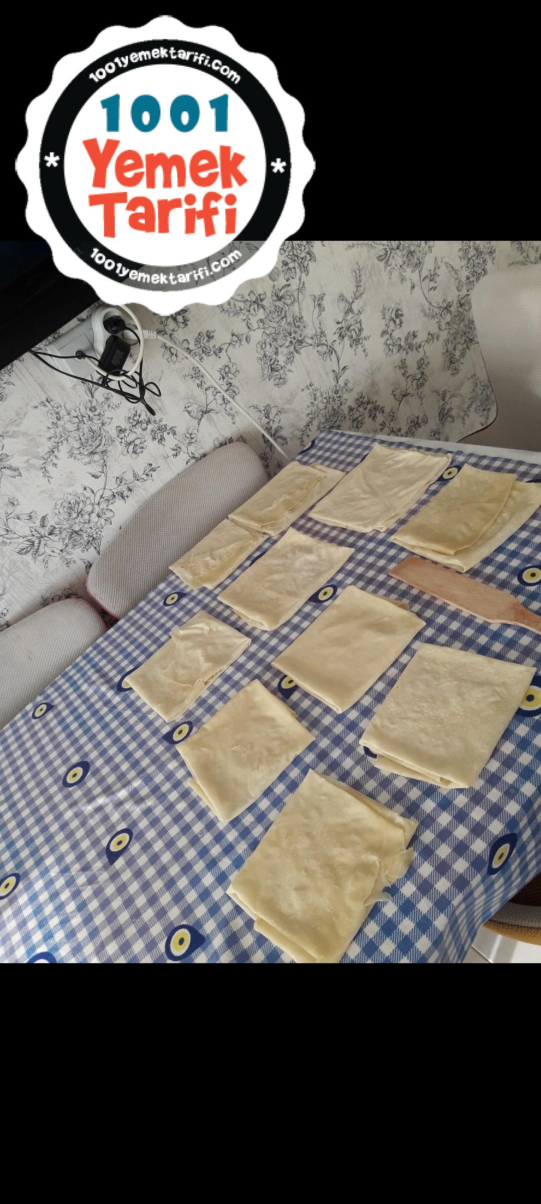 - 1 SB un ve 1sb nişastayı karıştıralım ve bu karışımla yufkaları tek tek açalım.pisirmek için: elektrik li Ocak kullandim ben siz tavada da yapabilirsiniz öncelikle 1 yufkayı ocağa bırakıp arkalı önlü yaklaşık 30 saniye kızartalım