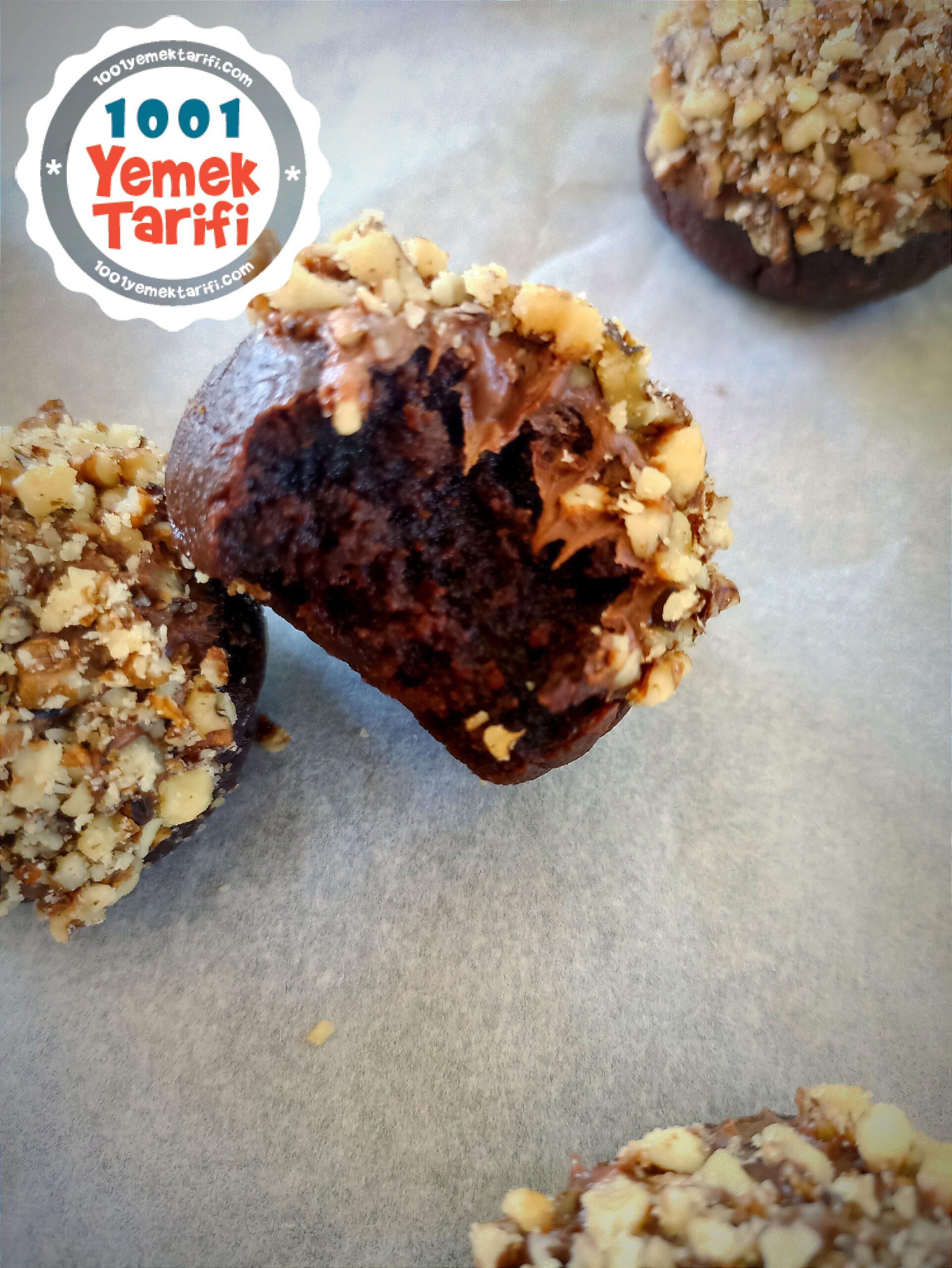 - Kurabiyelerimizi dilediğimiz gibi süsleyerek servis edelim. Ben oda sıcaklığında kahvaltılık çikolataya batırıp ceviz ile kaplamayı tercih ettim.