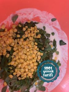 • Üzerine konserve mısırımızı ve tuzumuzu da ilave ederek güzelce karıştıralım.