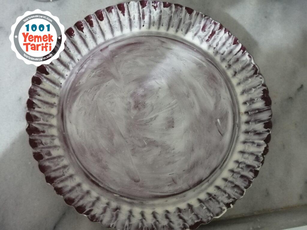 - Tart kalıbımızı margarinle iyice yağlayıp kek hamurunu kalıba alıp 180 – 200 derecelik fırına pişmeye bırakalım.