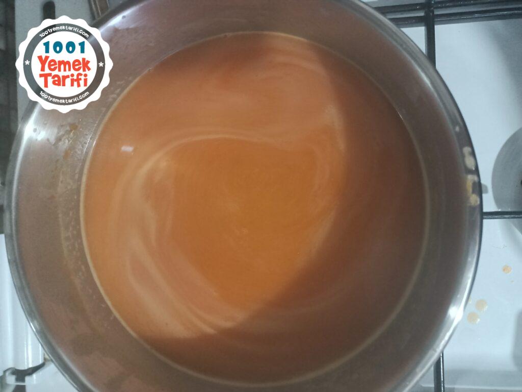 - Salçasıyla birlikte kavrulduktan sonra soğuk su koyalım topaklanma olmasın diye karıştırmaya devam edelim.
