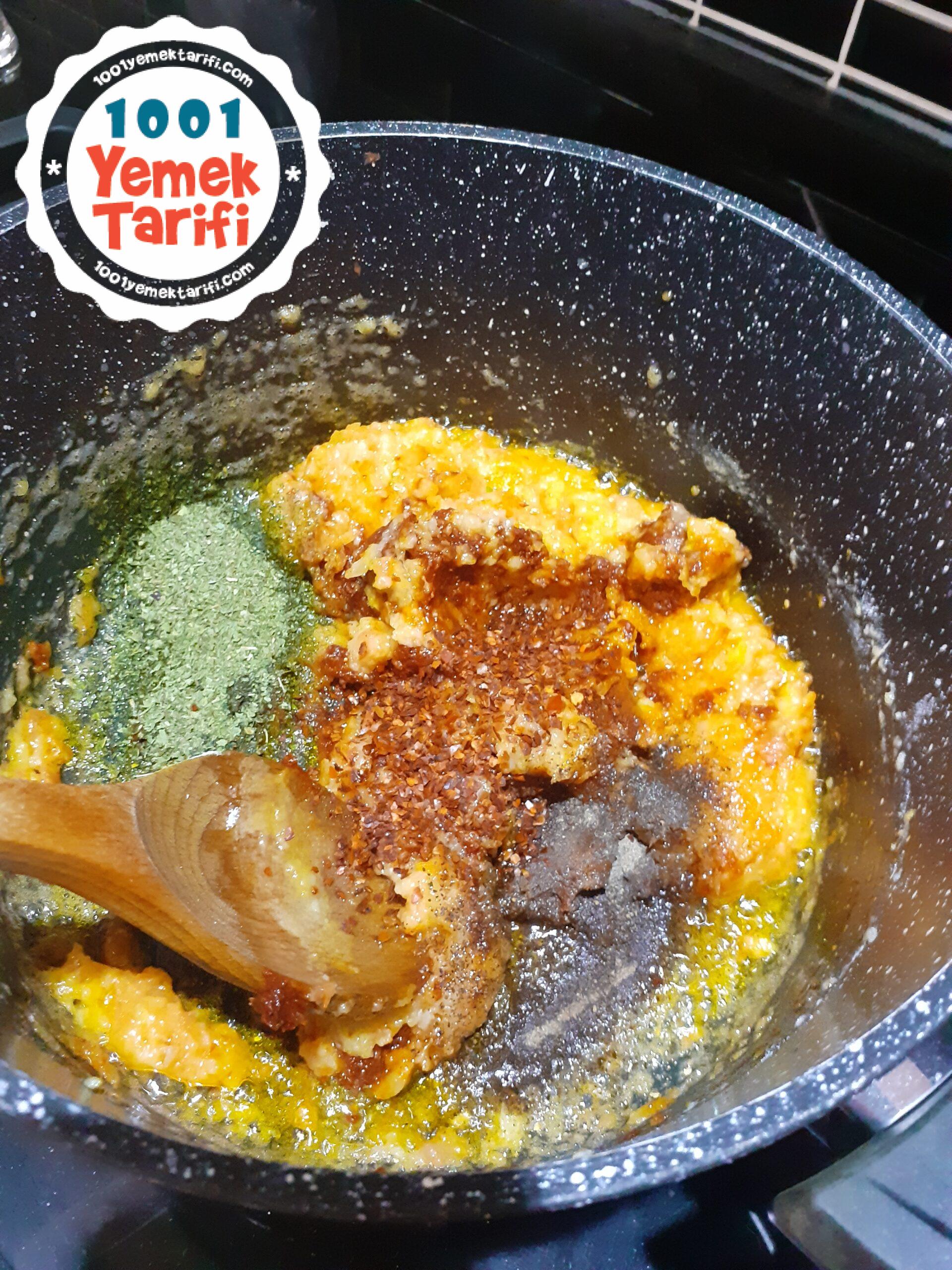 - Salçamızı ve baharatlarımızı da ekleyip karıştırıyoruz.