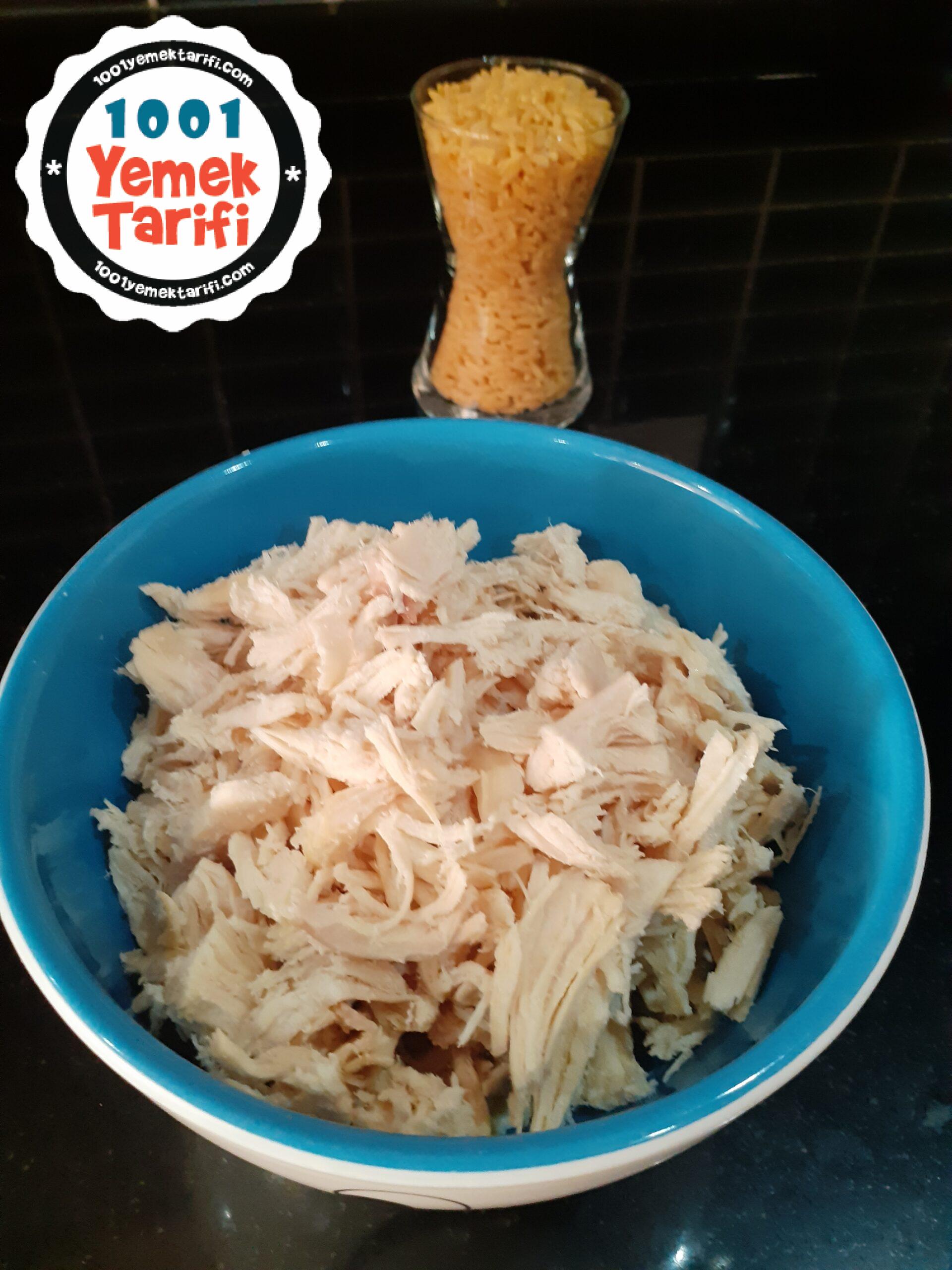 - Haşlanan tavuk göğsünü didikliyoruz.