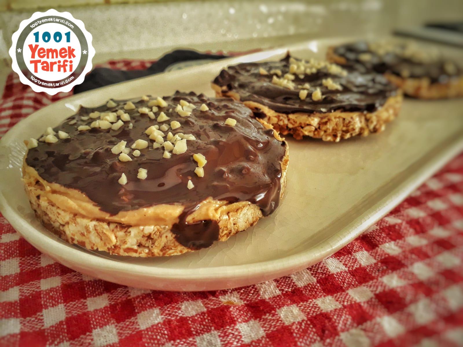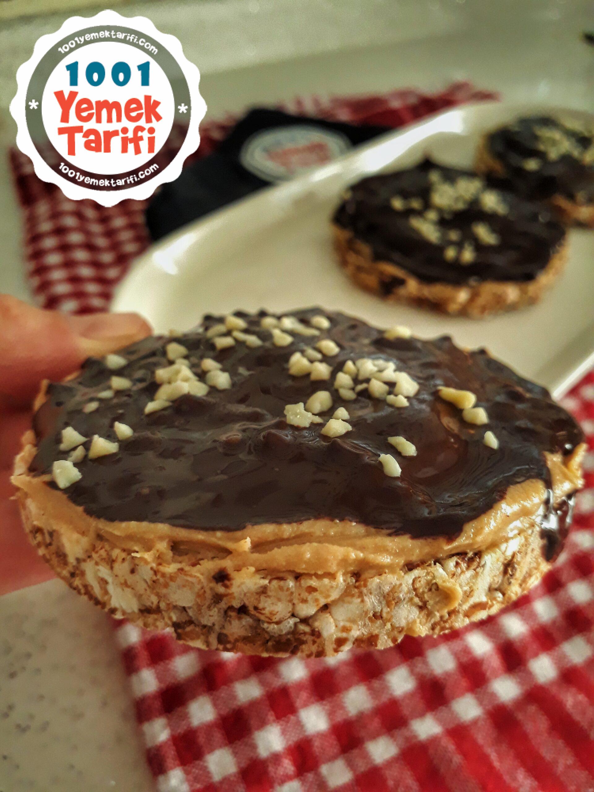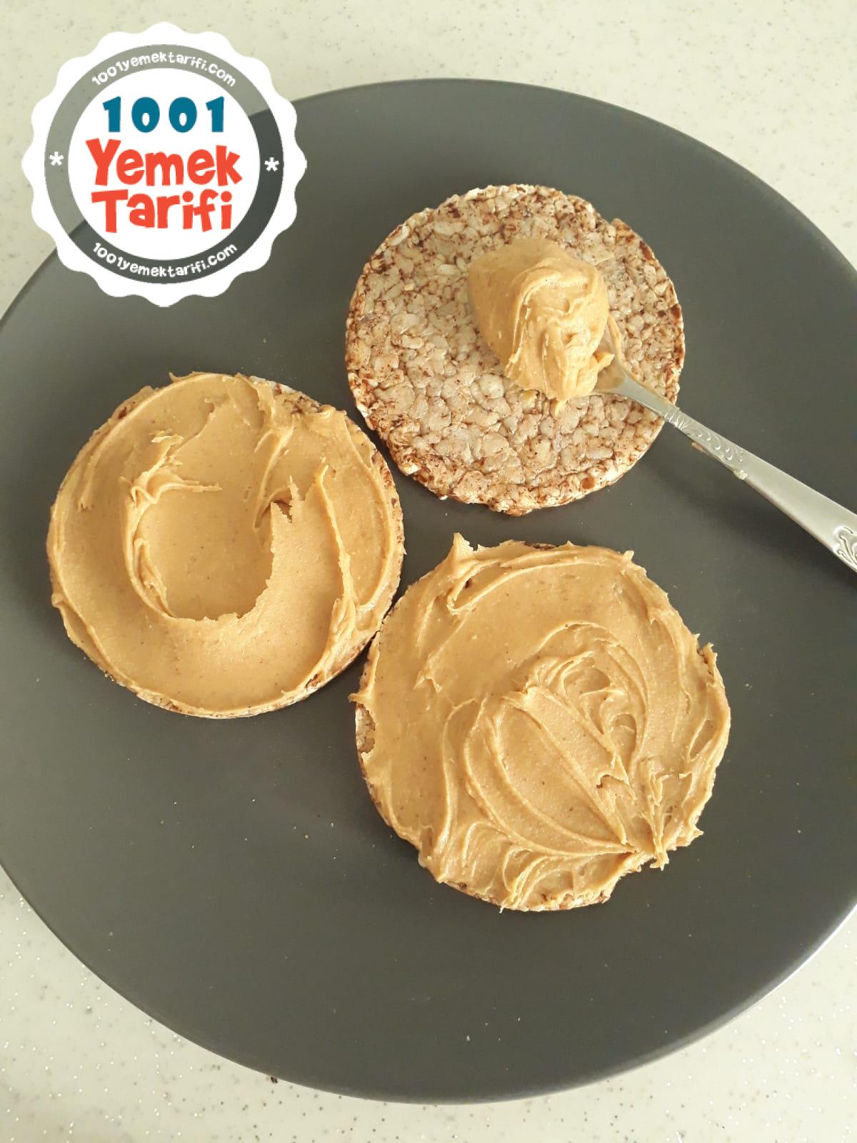 - Karabuğday patlağının üzerine 1 tatlı kaşığı kadar fıstık ezmesi sürün.