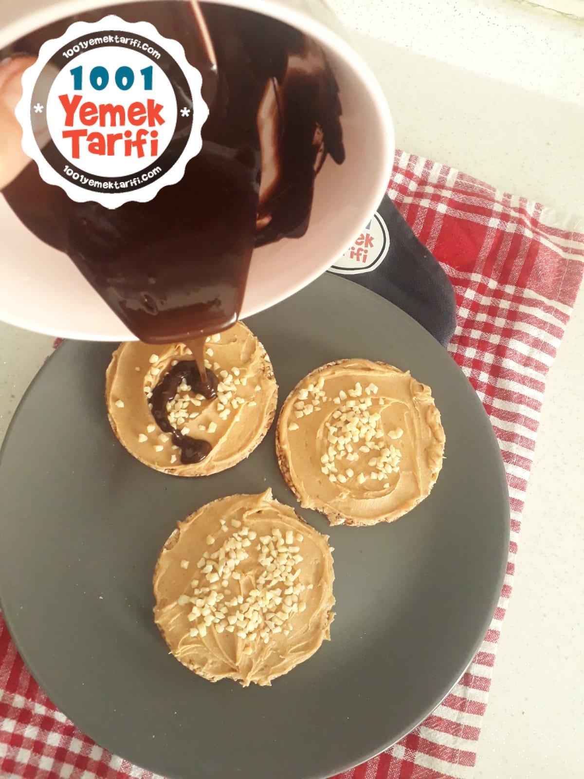 - Eritilmiş çikolata soğuyunca fıstık ezmesi üzerine gezdirin.