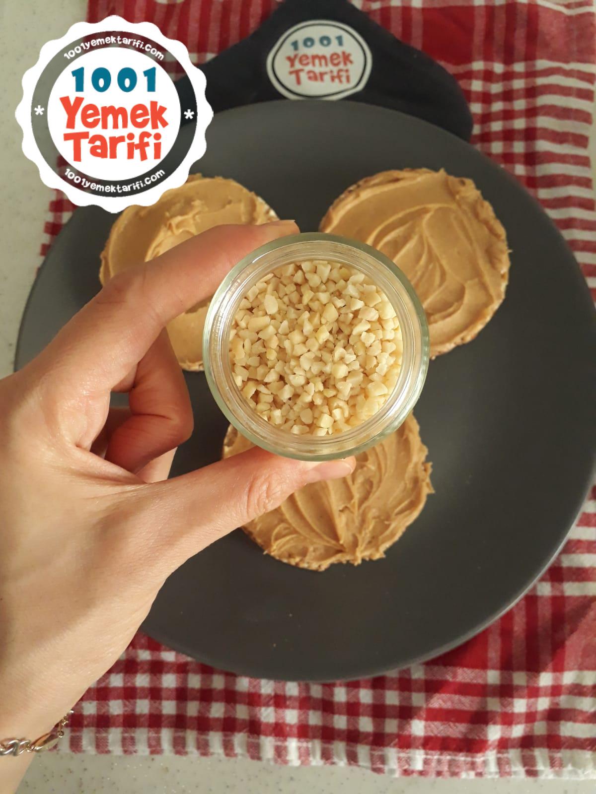 - fıstık ezmesi üzerine fındık parçacıklarından dökün.