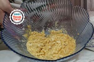 - Karıştırma kabımıza oda sıcaklığında ki tereyağını, yumurta, irmik, pudra şekeri ve cevizi ekliyoruz, malzemelerimiz özleşene kadar iyice karıştırıyoruz.