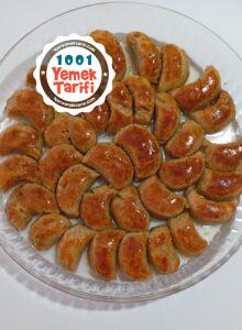 - Yassılanan hamuru çay bardağının ağzı ile keserek yarım ay şekli veriyoruz ve tatlımızın kurabiyesini hazırlamış oluyoruz.