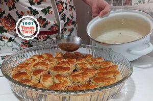 - Tatlımız fırından çıkar çıkmaz üzerine soğumuş olan şerbetimizi gezdiriyoruz ve dinlenmeye bırakıyoruz.