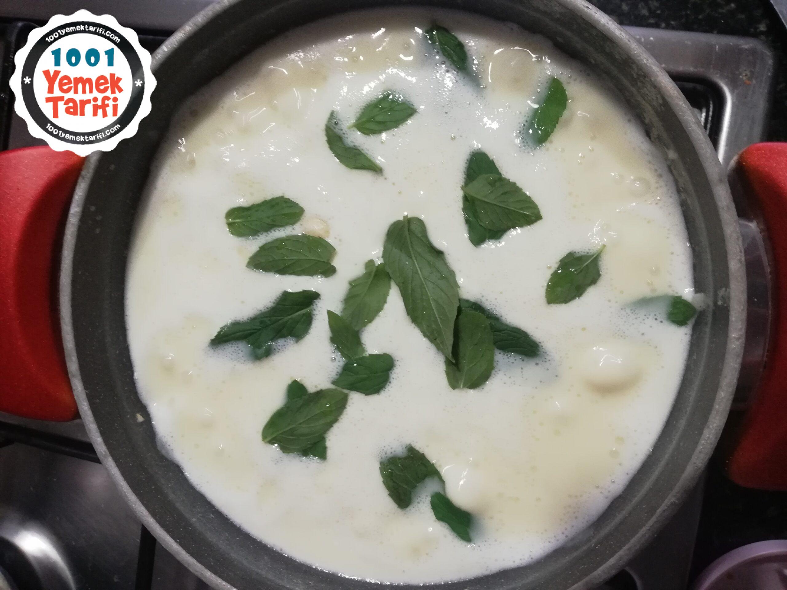 - Kaynayınca üzerine Yeşil nane yapraklarını ve tuzunu atın.
