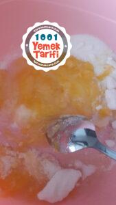 - Daha sonra üzerine tereyağ, sıvıyağ ve yoğurt da ekleyip tekrar karıştırıyoruz.