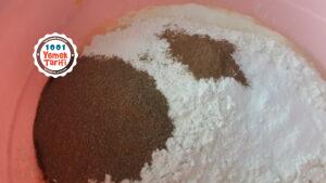- Üzerine un, kabartma tozu, vanilya tarçın ve baharlarımızı da ekleyip yoğuruyoruz.