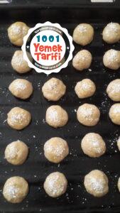 - Hamurdan ceviz büyüklüğünde parçalar koparıp elimizde yuvarlıyoruz.