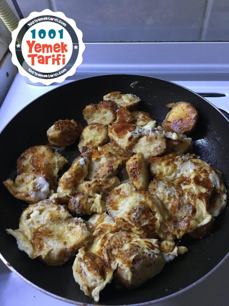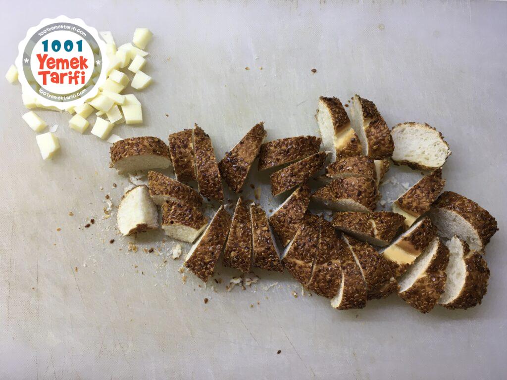 - Hazırladığımız bu yumurtalı karışıma dilimlenmiş simitlerimizi koyup iyice karıştıralım.