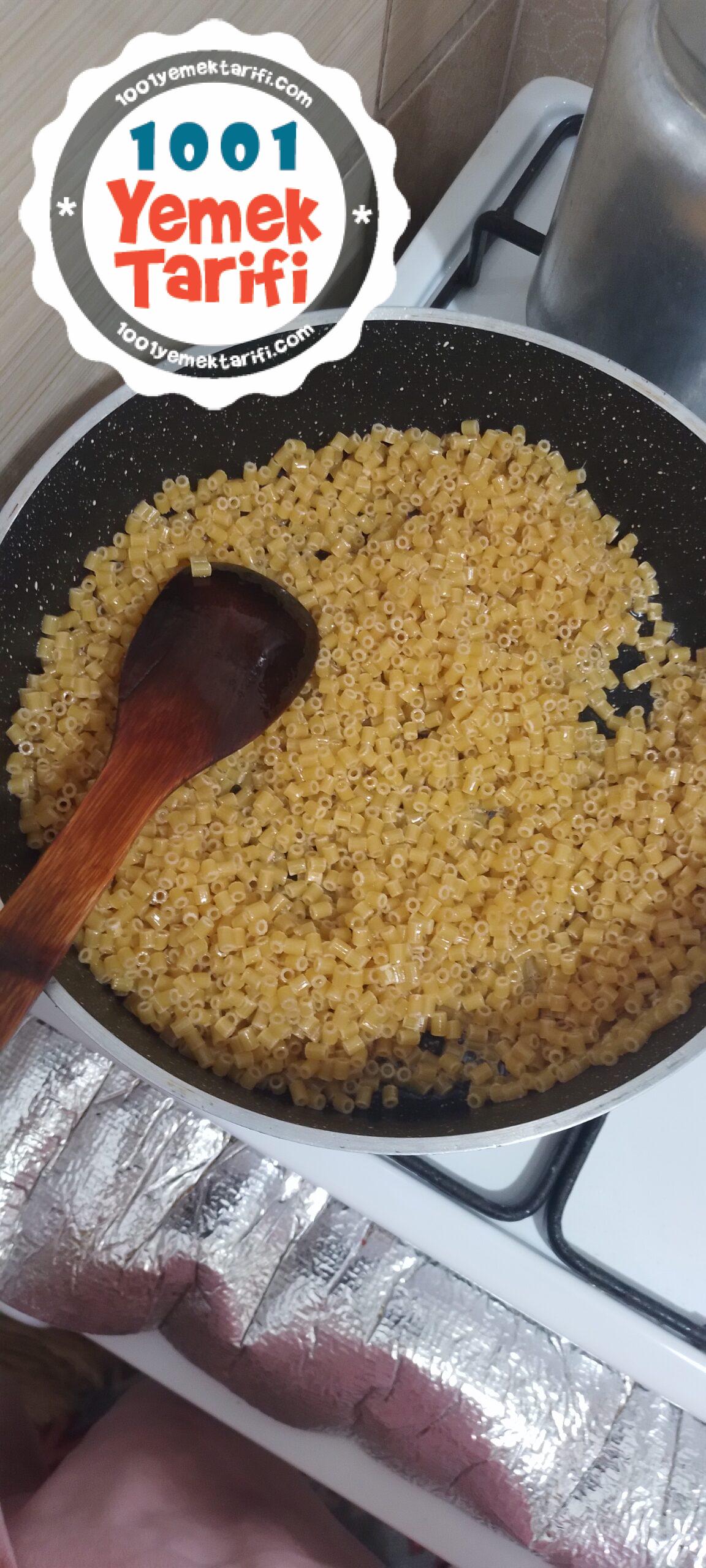 - ilk adım olarak makarnalarımızı kavurup pişiriyoruz.