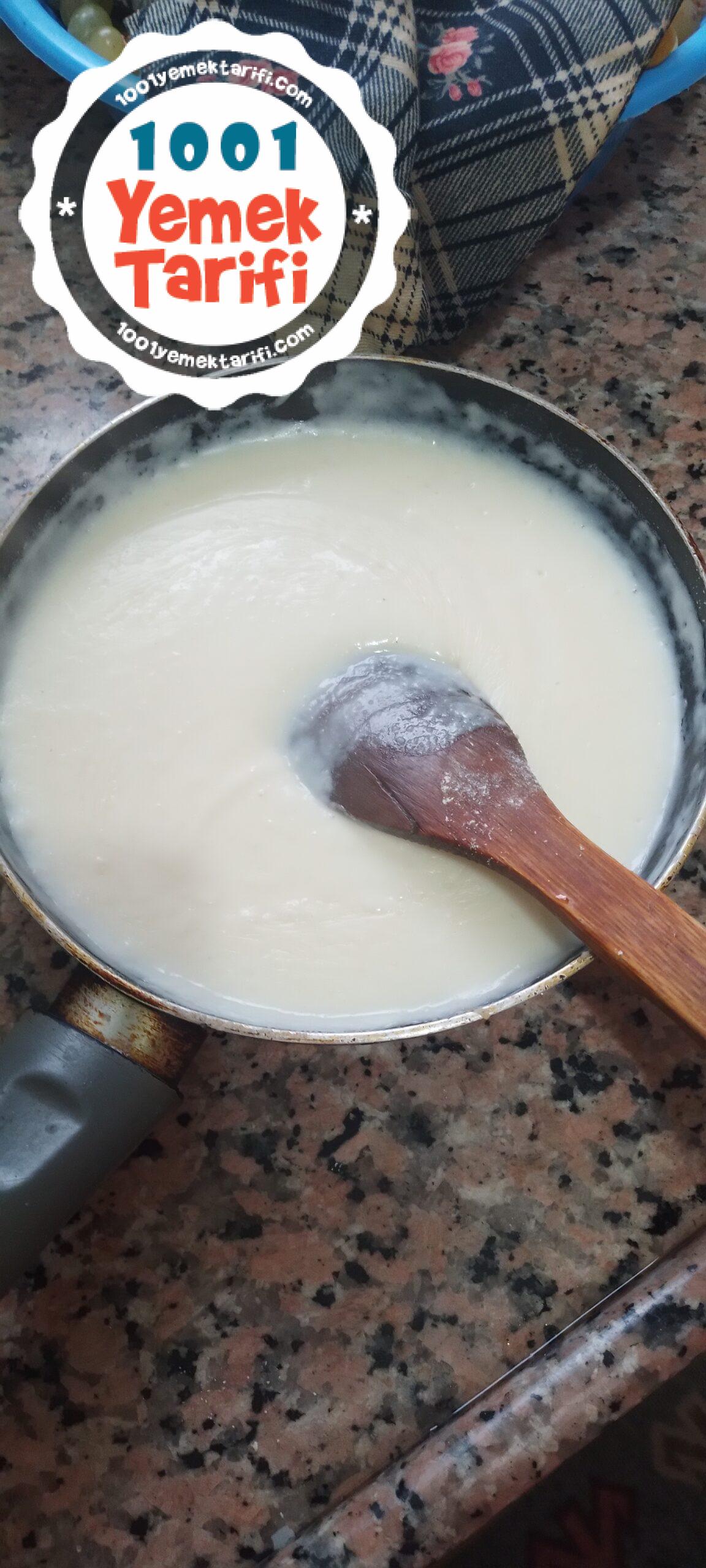 - kokusu çıktıktan sonra 1.5 çay bardağı sütü ekleyip koyu kıvam alana kadar pişirmeye devam ediyoruz.en son tuzumuzu ekliyoruz.