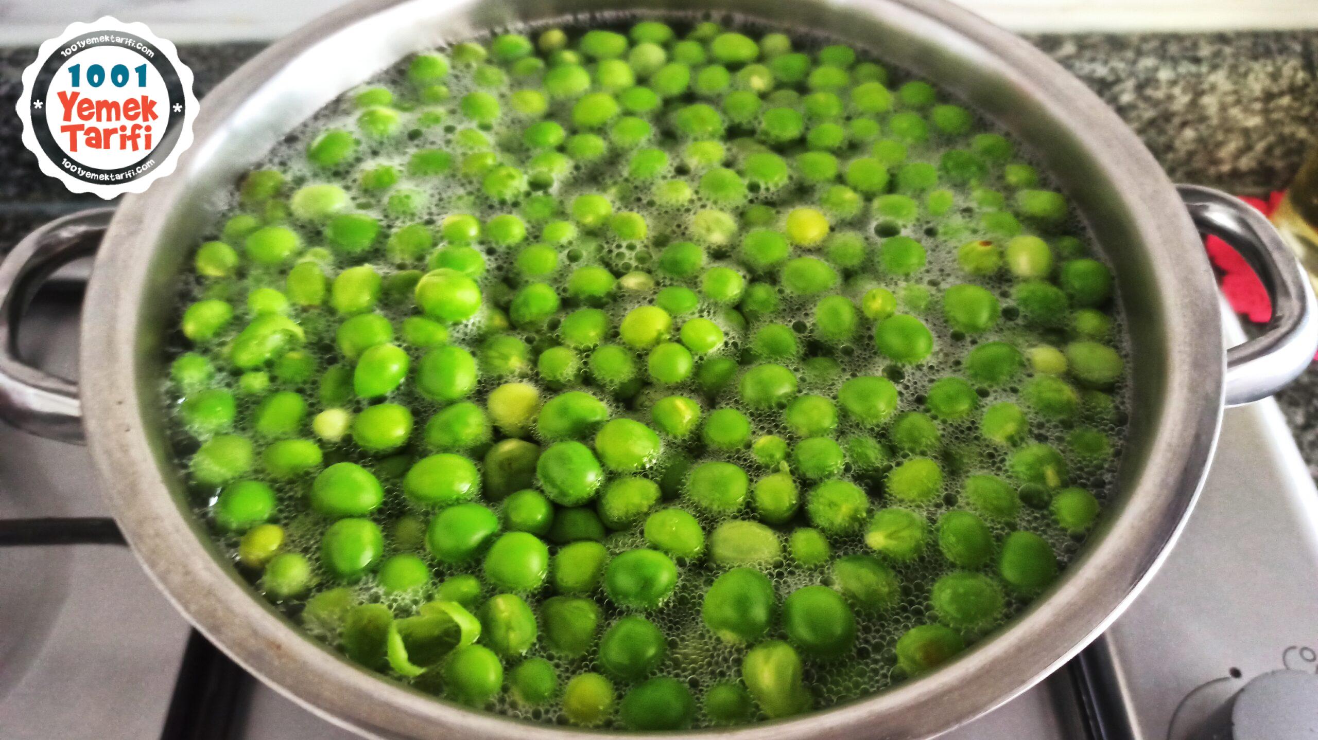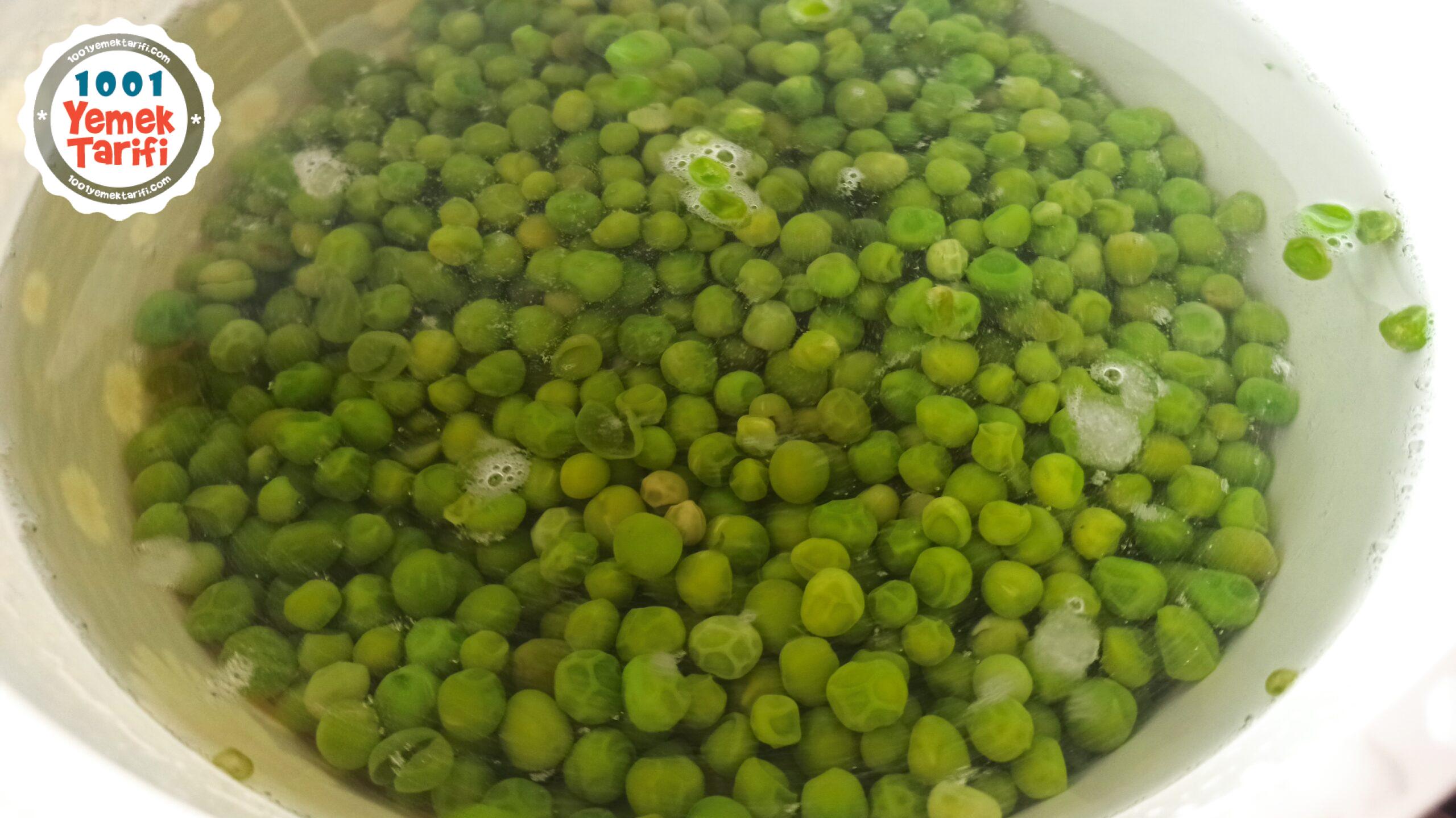 - Suyumuz kaynayınca bezelyelerimizi rengini dönene kadar haşlayalım 8-10 dakika yeterli olacaktır.