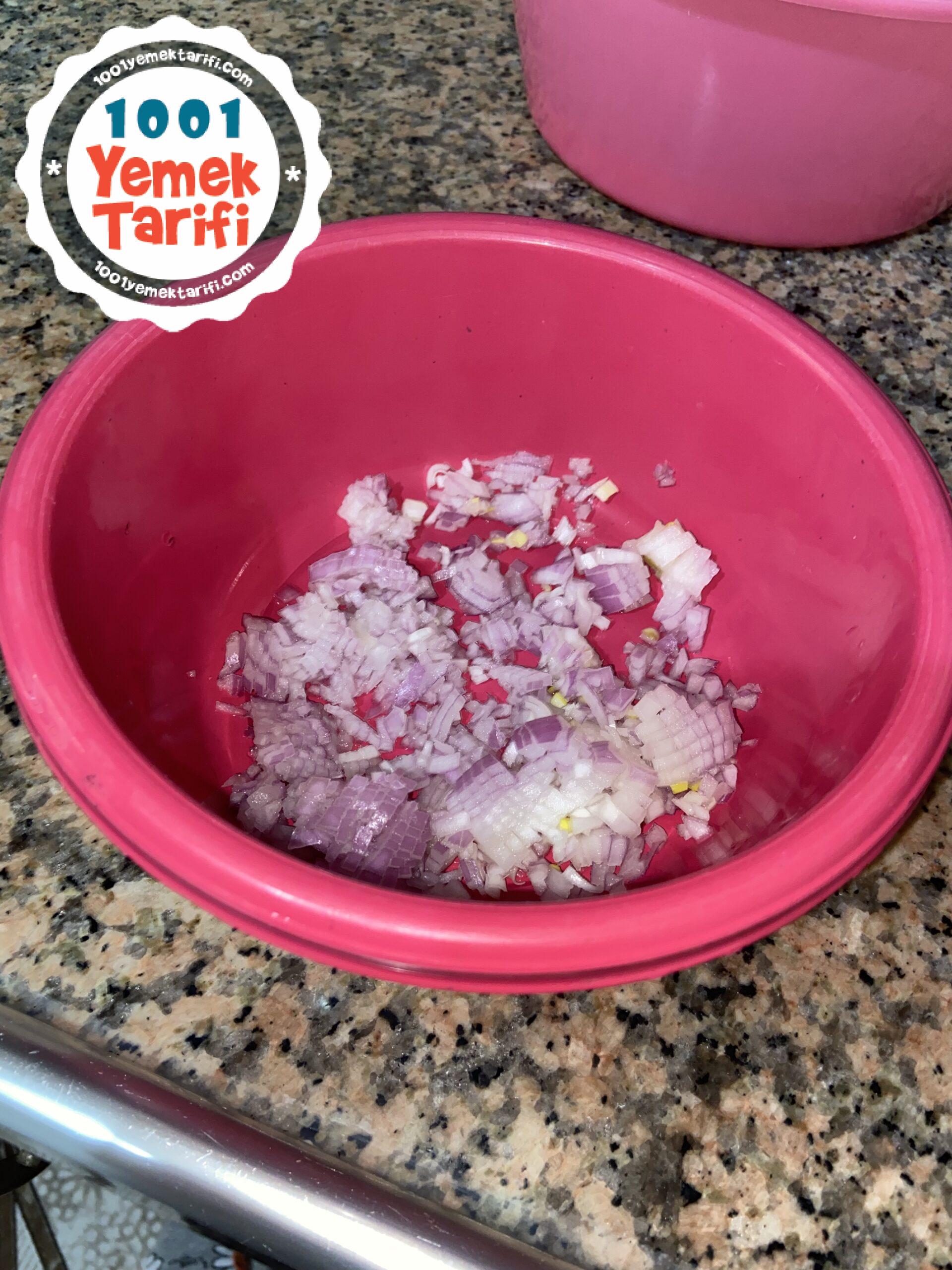 - Bir adet ince kıyım kuru soğan ekleyelim