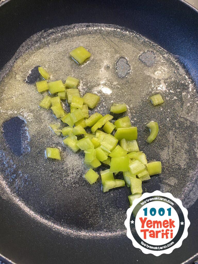 - Doğranmış yeşil biberleri yağda renk alana kadar kavuralım.