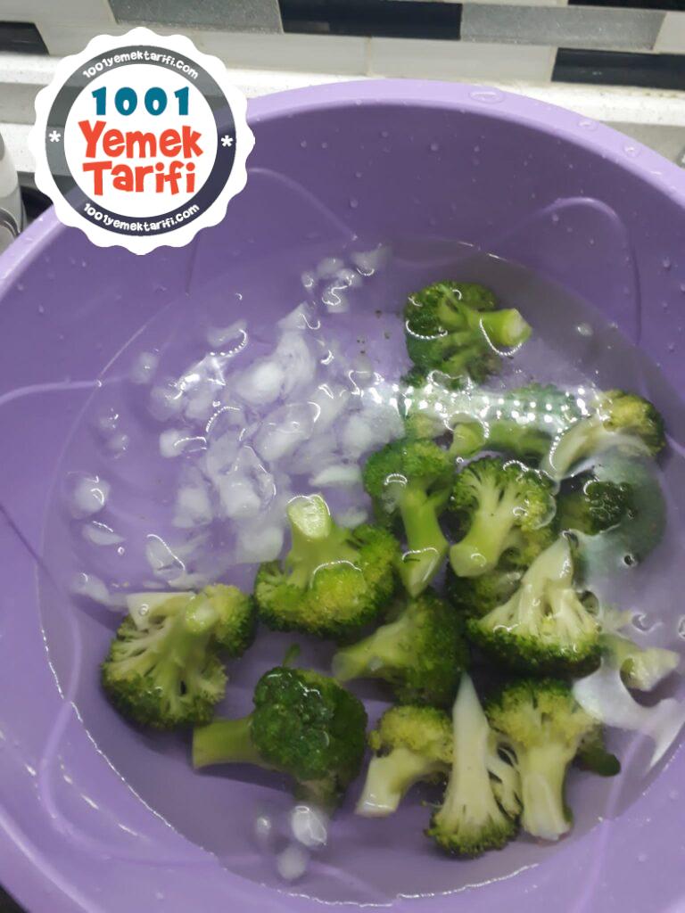 - Brokolileri haşladıktan hemen sonra brokolilerimizi buzlu suya alalım ki yeşilliğini korusun.