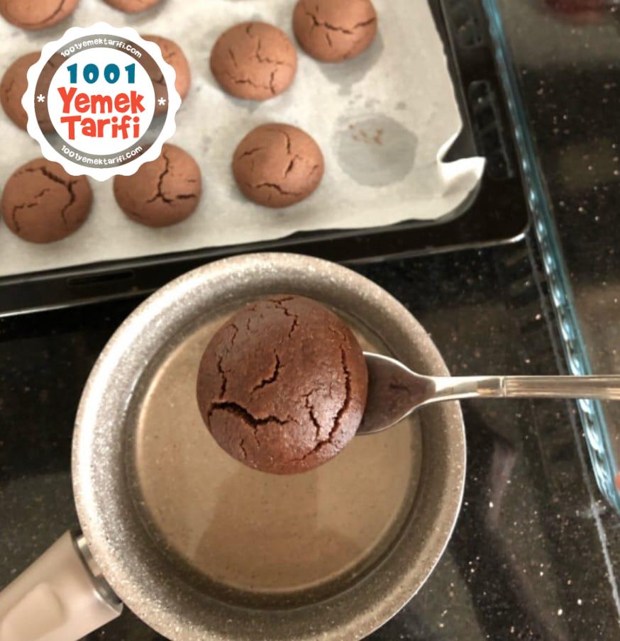 - Kurabiyelerin ilk sıcaklığı geçince şerbetin içine batırıyoruz bir süre şerbetin içinde bekletiyoruz ve kalan şerbeti kurabiyelerin üstüne döküyoruz.