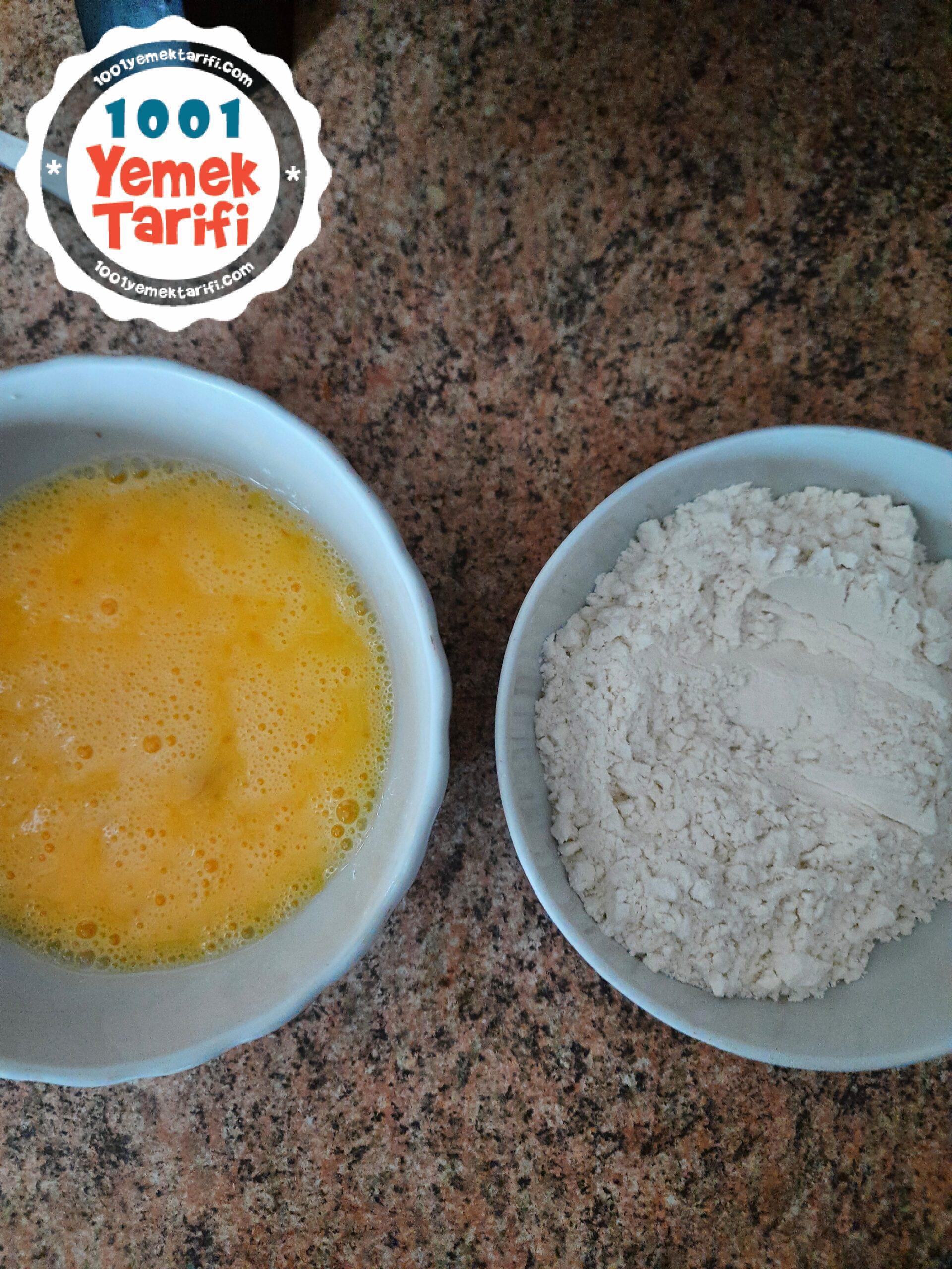 - Yumurtaları kırıp unla beraber iki ayrı kâseye koyun ve yumurtaları çırpın.