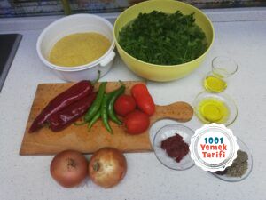 İnce bulguru büyük bir tepsiye dökün ve üzerini geçecek kadar kaynamış su dökerek ıslatın. Kenarda bekletin.
