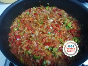 Üzerine az miktar su ekleyip biberler yumuşaya kadar pişirin.