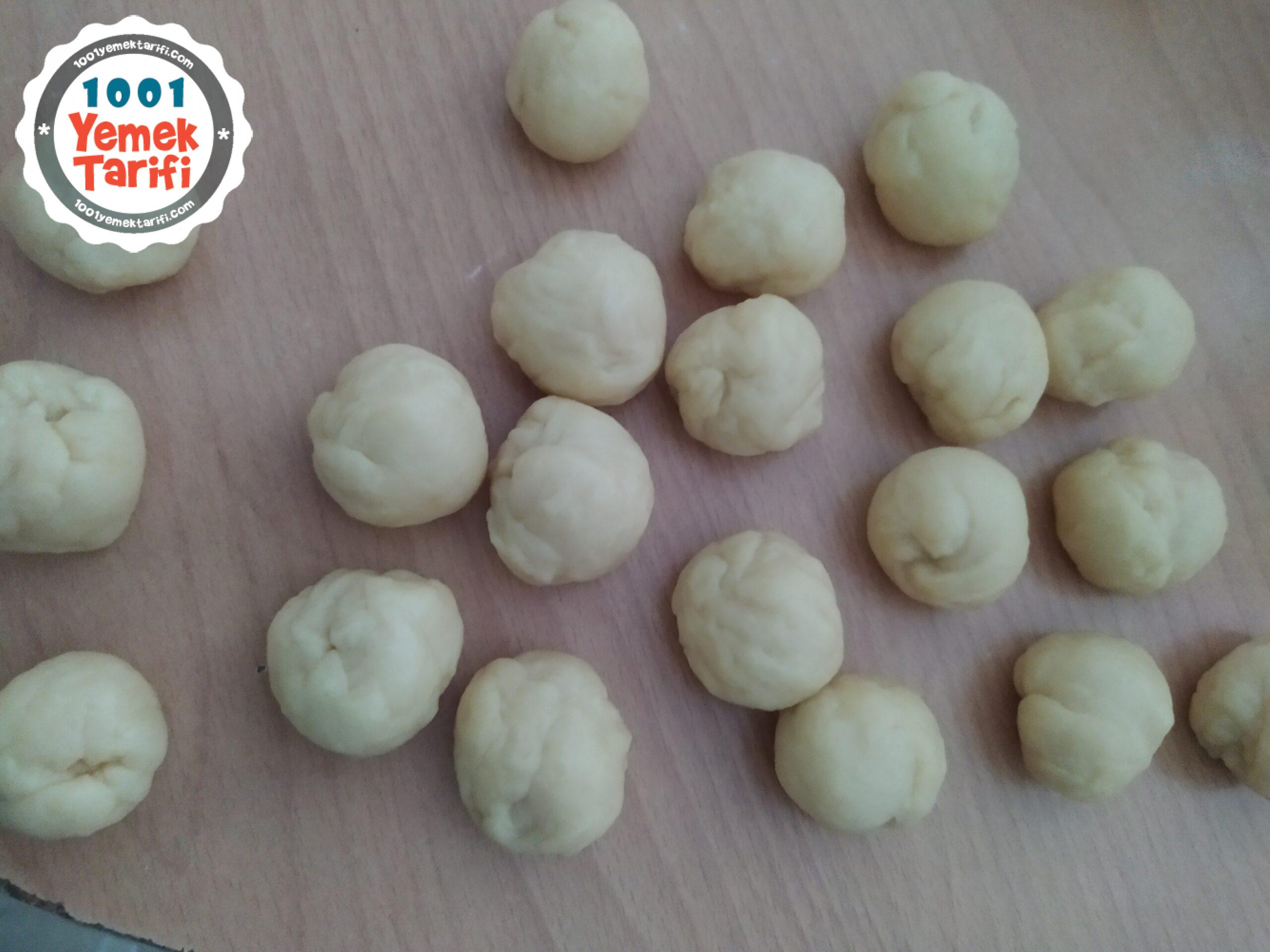 - Öncelikle hamur için tüm malzemeleri karıştırma kabına alalım ve iyice yoğuralım. Hamuru 30 adet ceviz büyüklüğünde parçaya bölelim.