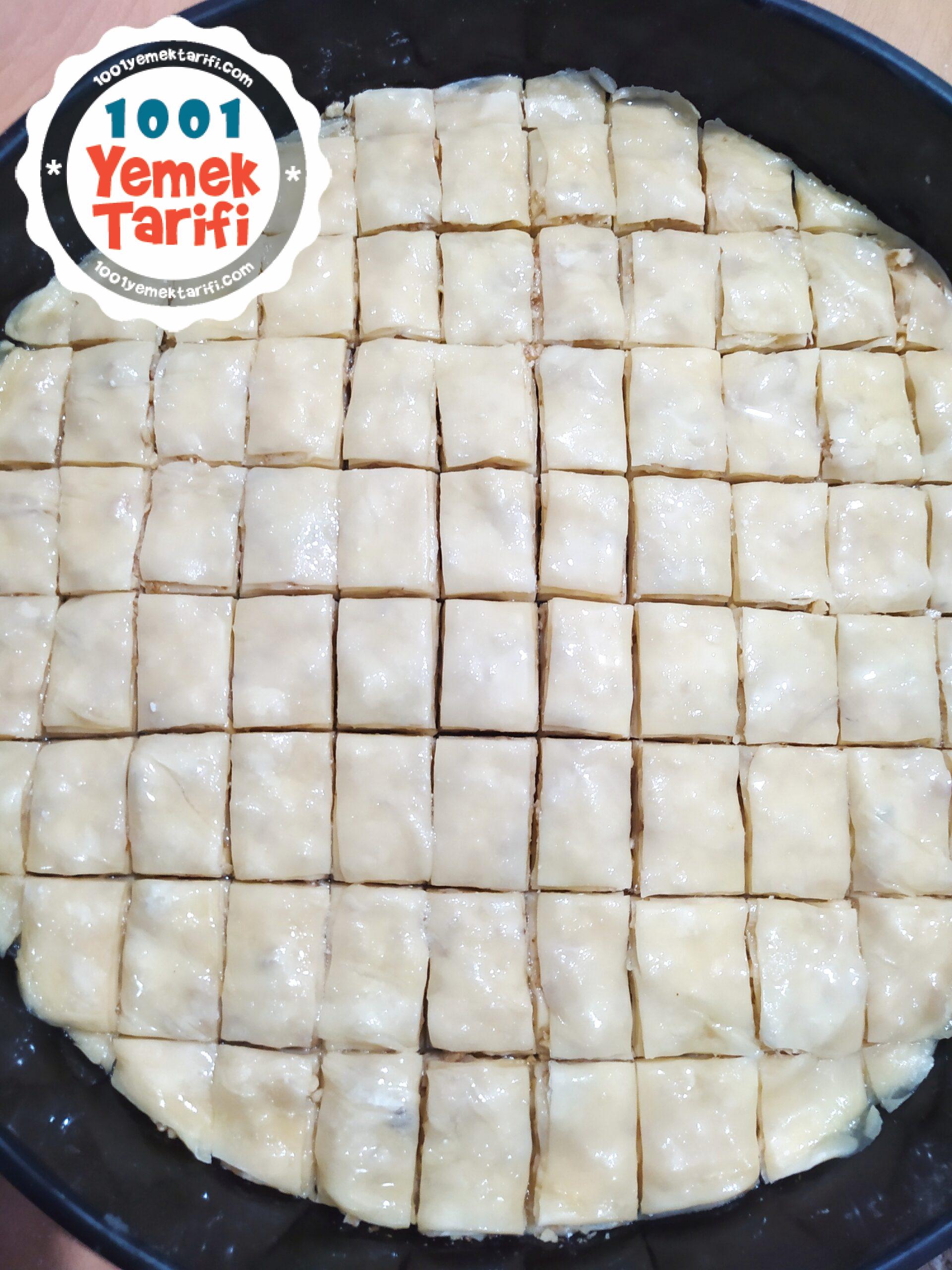 - Fırından çıkardıktan sonra ilk sıcaklığı geçince 4-5 dakika sonra ılıyan şerbeti üzerine gezdirerek dökelim. 2-3 saat sonra baklavanızı tüketebilirsiniz . Afiyet olsun…