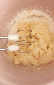 - Soğuyan pasta kremasını çırptığınız kremşantiyle buluşturun ve mikserle pürüzsüz kıvam olacak şekilde çırpın. Kremamız artık hazır.