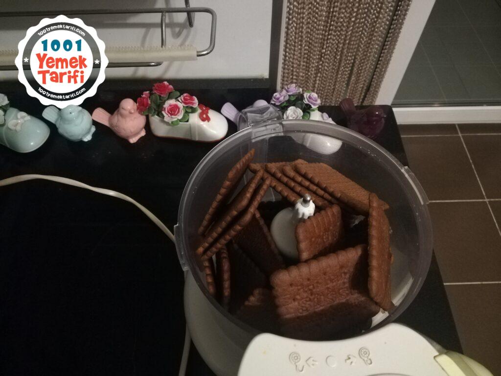 • Öncelikle bisküvileri rondadan geçirip un haline getirelim