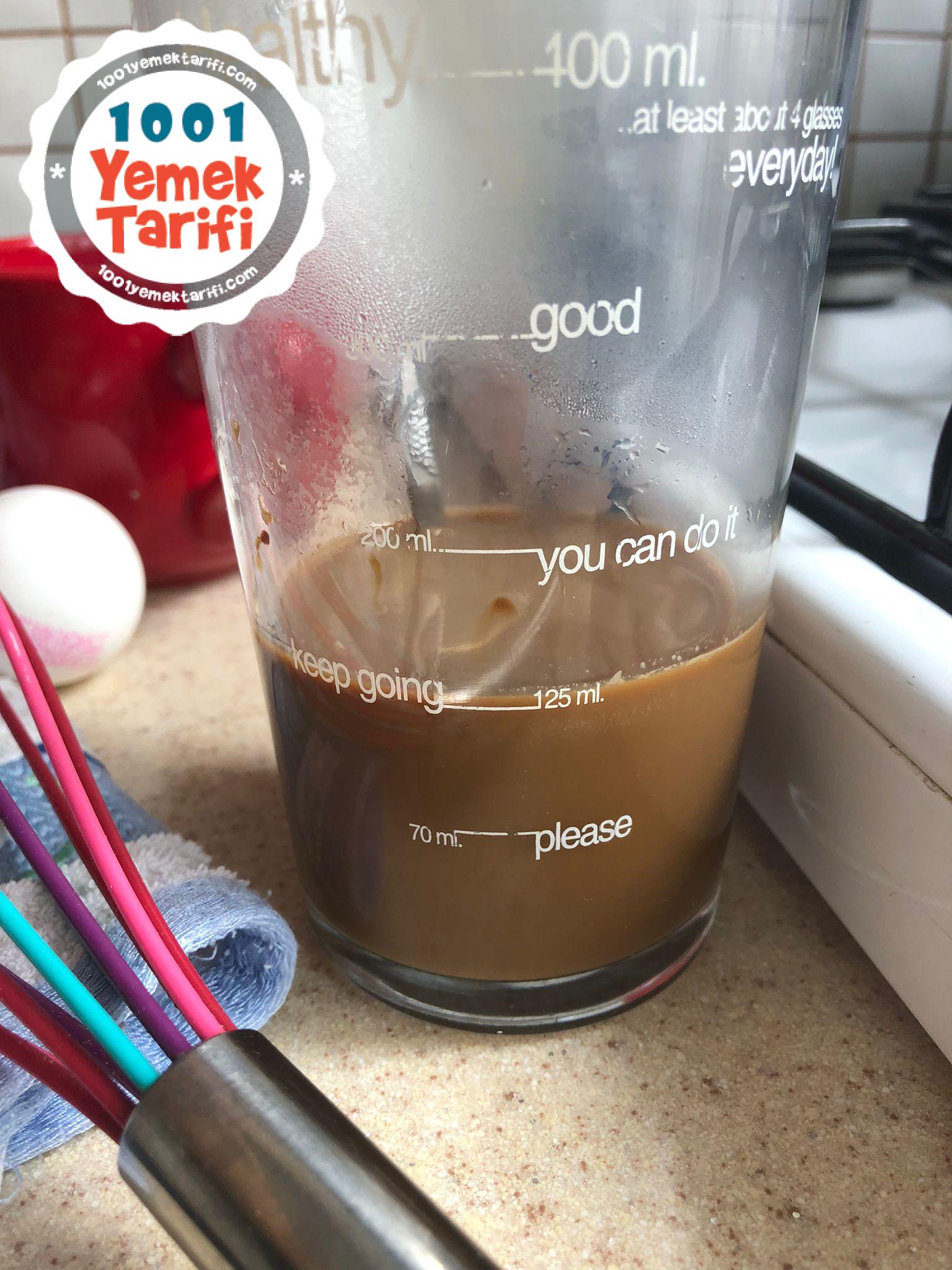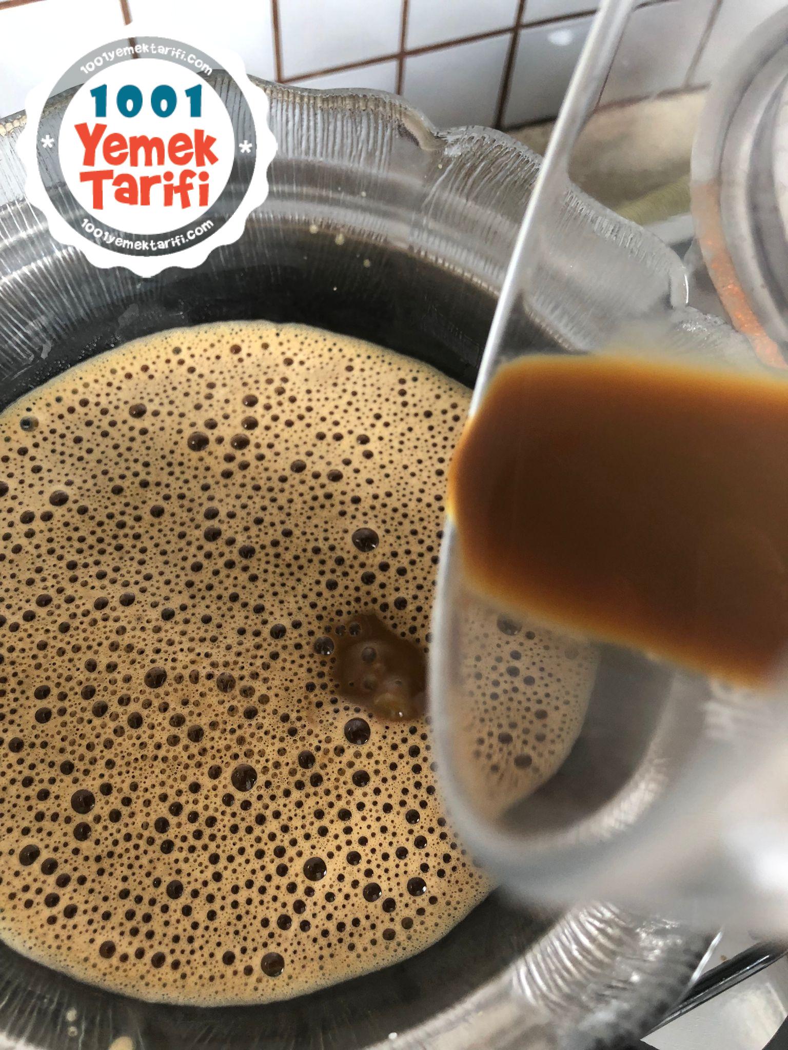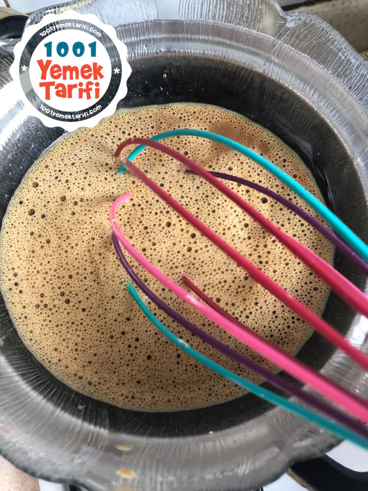 - -Kahveli suyumuzu karıştırırken şekerle yumurtalı olan kabımıza ekleyelim ve hızla karıştıralım.