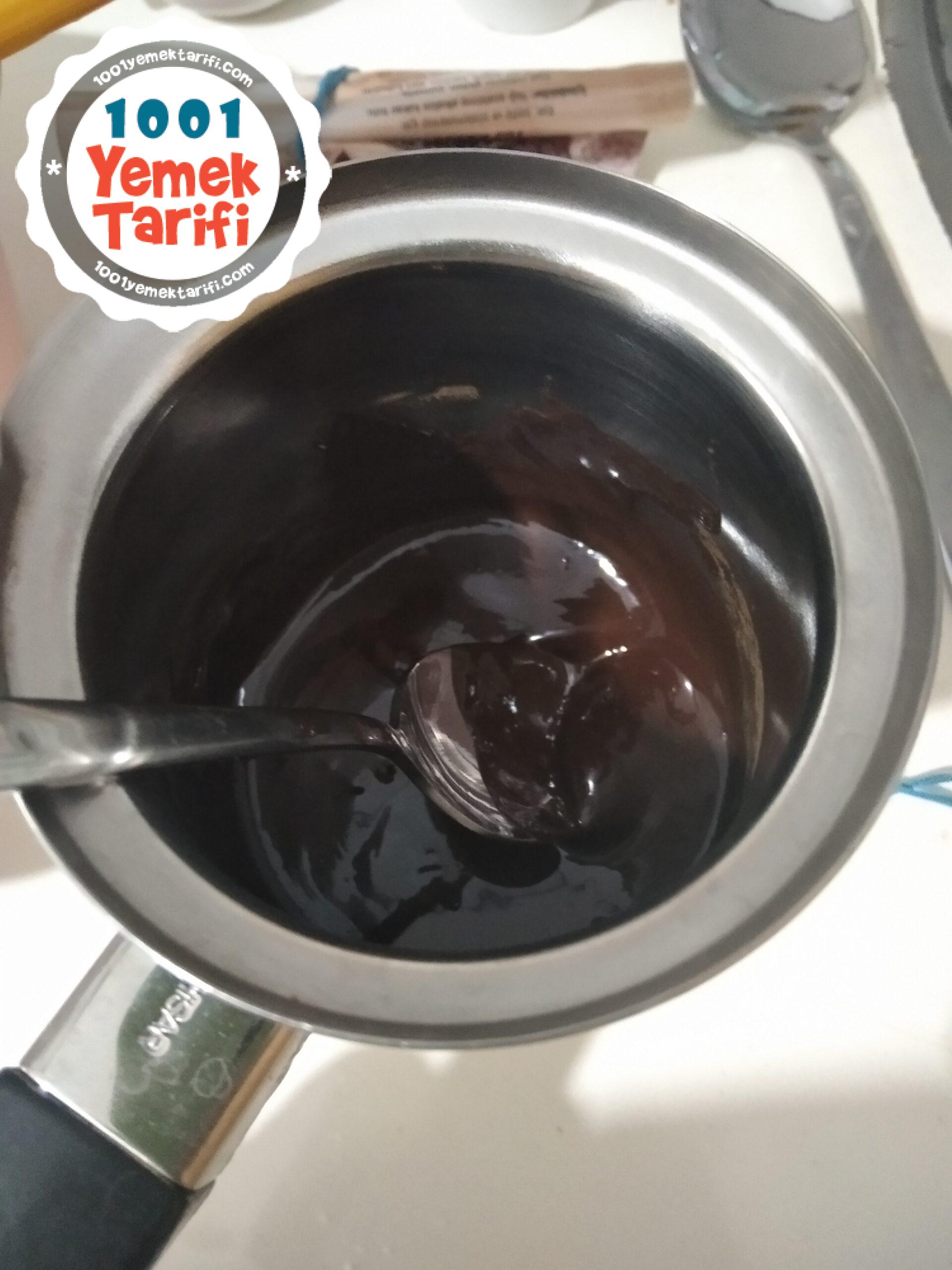 - Öncelikle çikolata benmari usulü ile eritilir ve kenara alınır
