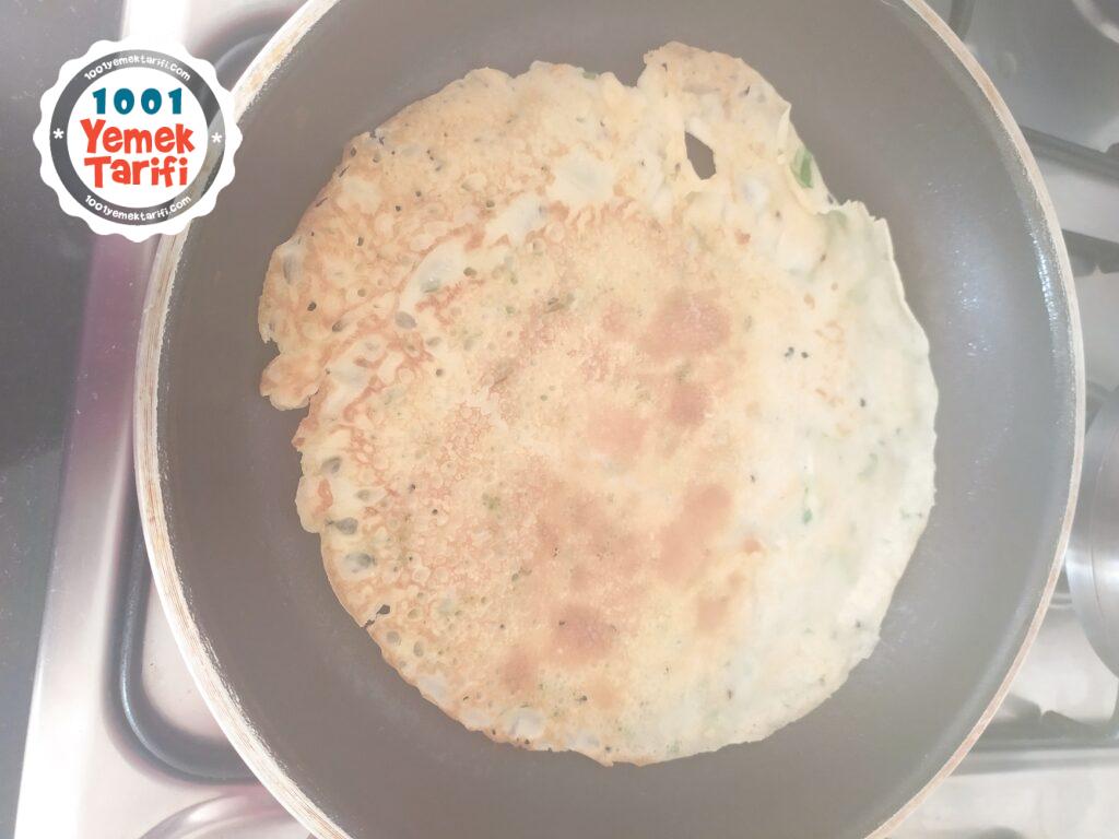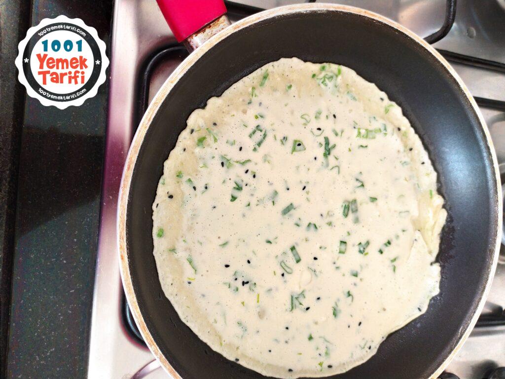 • Bir tavaya biraz yağ dökülür ve ısınınca bir kepçe karışımdan dökülerek tavaya yayılır ve ön arka kızartılarak kenara alınır.
